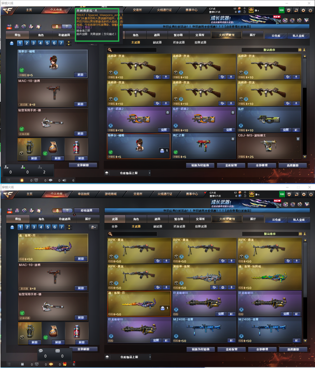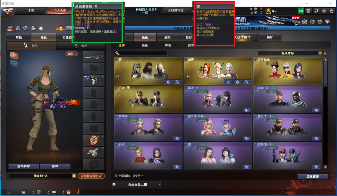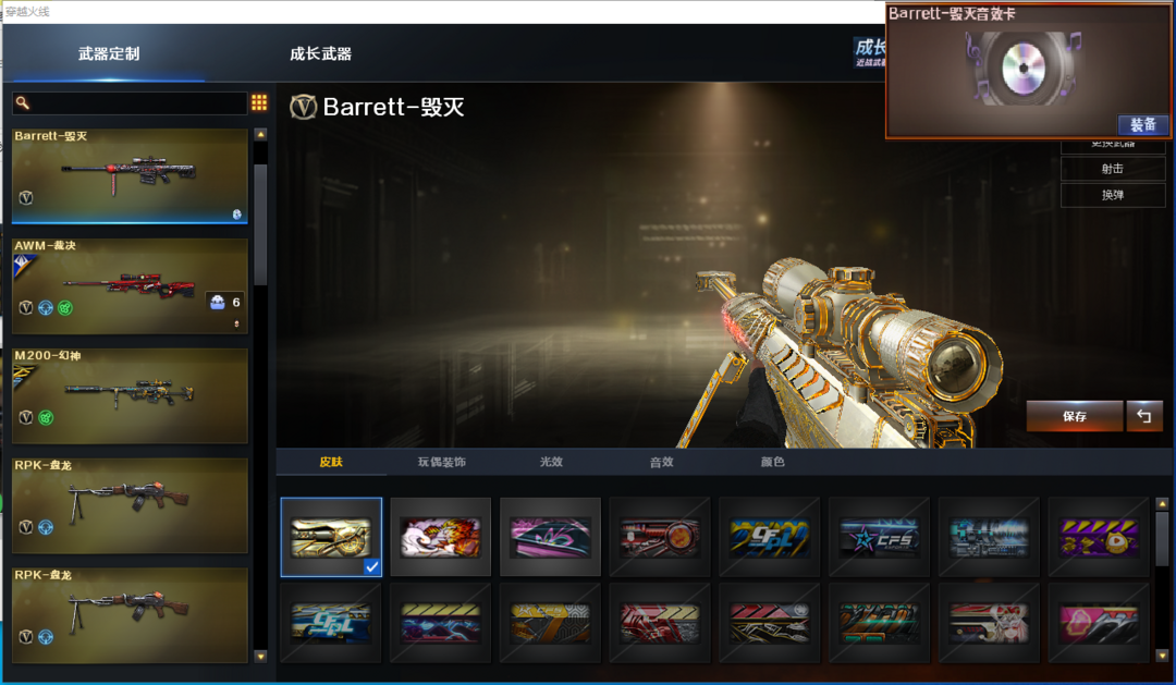 装备描述:排位:可以---------------------------爆破全装:幻神(周瑜皮肤)、USP雷暴、世冠柯尔特、白虎、QBZ金色蔷薇、、、毁灭音效、雷神音效、火麒麟音效、黑骑士音效、、、5套雷暴、、、爆破全装