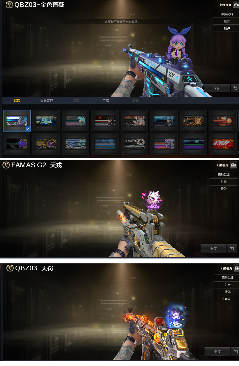 装备描述:排位:可以、、、、、爆破四防:幻神音效2皮肤(动感闪耀、黄忠)、裁决皮肤带音效、、、、COP堕天神、竞技荣光柯尔特、USP雷暴王者、传说破晓、、、FAMAS G2-天戎、QBZ金色蔷薇、QBZ天罚、、、幻神音效、裁决音效、雷神音效、、、、7套幻灵、、、、爆破人物(司雨、影豹)