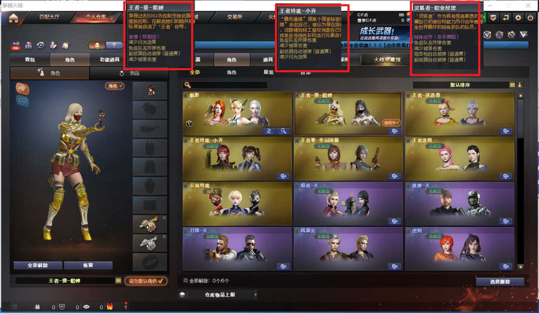 装备描述:排位:可以、、、、、、、、、、、、、爆破四防:幻神2皮(宠儿、丹凤皮肤)、传说灵眸、M200-竞技荣光、王者星神、冠军之特、白虎、QBZ金色蔷薇、、、幻神音效、毁灭音效、雷神音效、火麒麟音效、黑骑士音效、、、1套雷霆、1套雷暴、2套堕天神、1套幻灵、1套竞技荣光、1套神工天巧、、、爆破四防(王者貂蝉、王者小乔、职业经理)