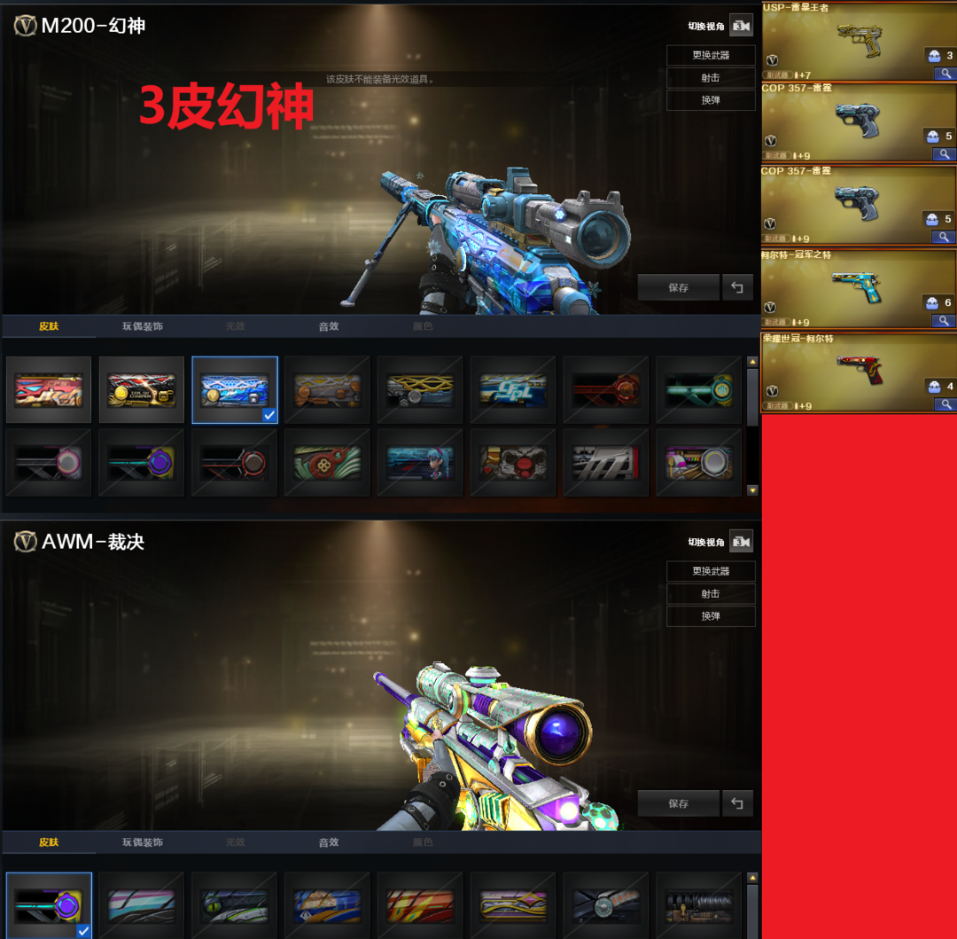 装备描述:排位:可以、、、、、、、、、、、、、、爆破四防:幻神3皮(EP荣耀、AG、2022皮肤)、USP雷暴王者、2个COP幻灵、世冠柯尔特、冠军之特、G36幻影、白虎、QBZ金色蔷薇、、、7套雷霆、1套雷暴王者、、爆破四防(王者春)
