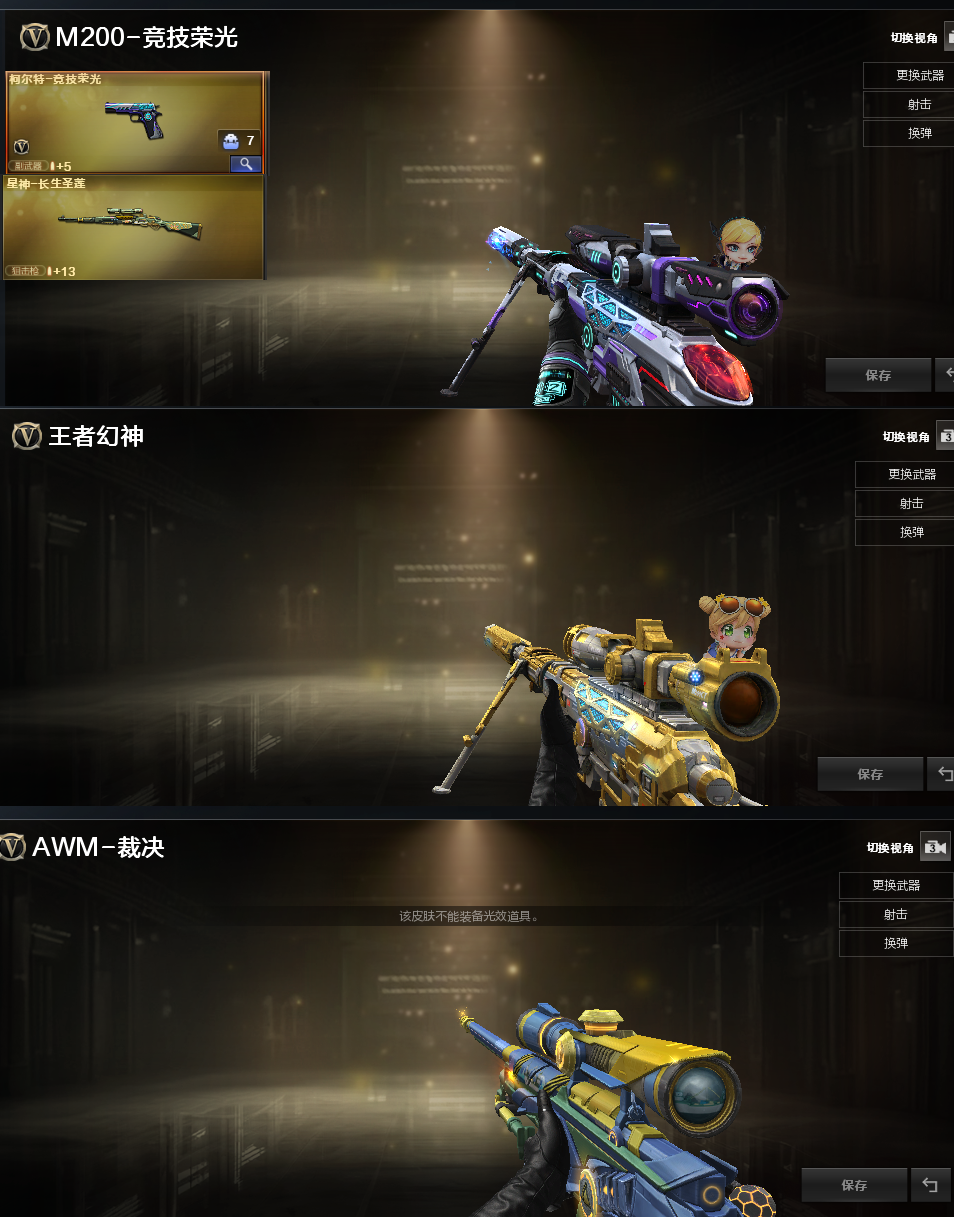 装备描述:排位:可以、、、、、、、、爆破全装:王者幻神(已觉醒)M200-竞技荣光、星神-长生圣莲、柯尔特竞技荣光、王者白虎、白虎、QBZ金色蔷薇、、、毁灭音效、黑龙音效、火麒麟音效、、、1套雷霆、1套堕天神、1套电竞装甲、2套竞技荣光、1套雷暴王者、、、爆破人物(晴雅)