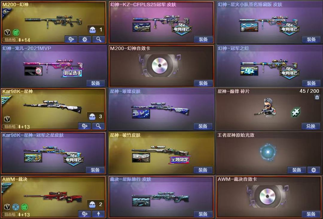 116豆⭐幻兽5套裁决卡⭐传说影煞幻神kz星火宠儿音效卡⭐蝴蝶刀冠军之虎之星冠特雷暴满手枪⭐6烈6盘