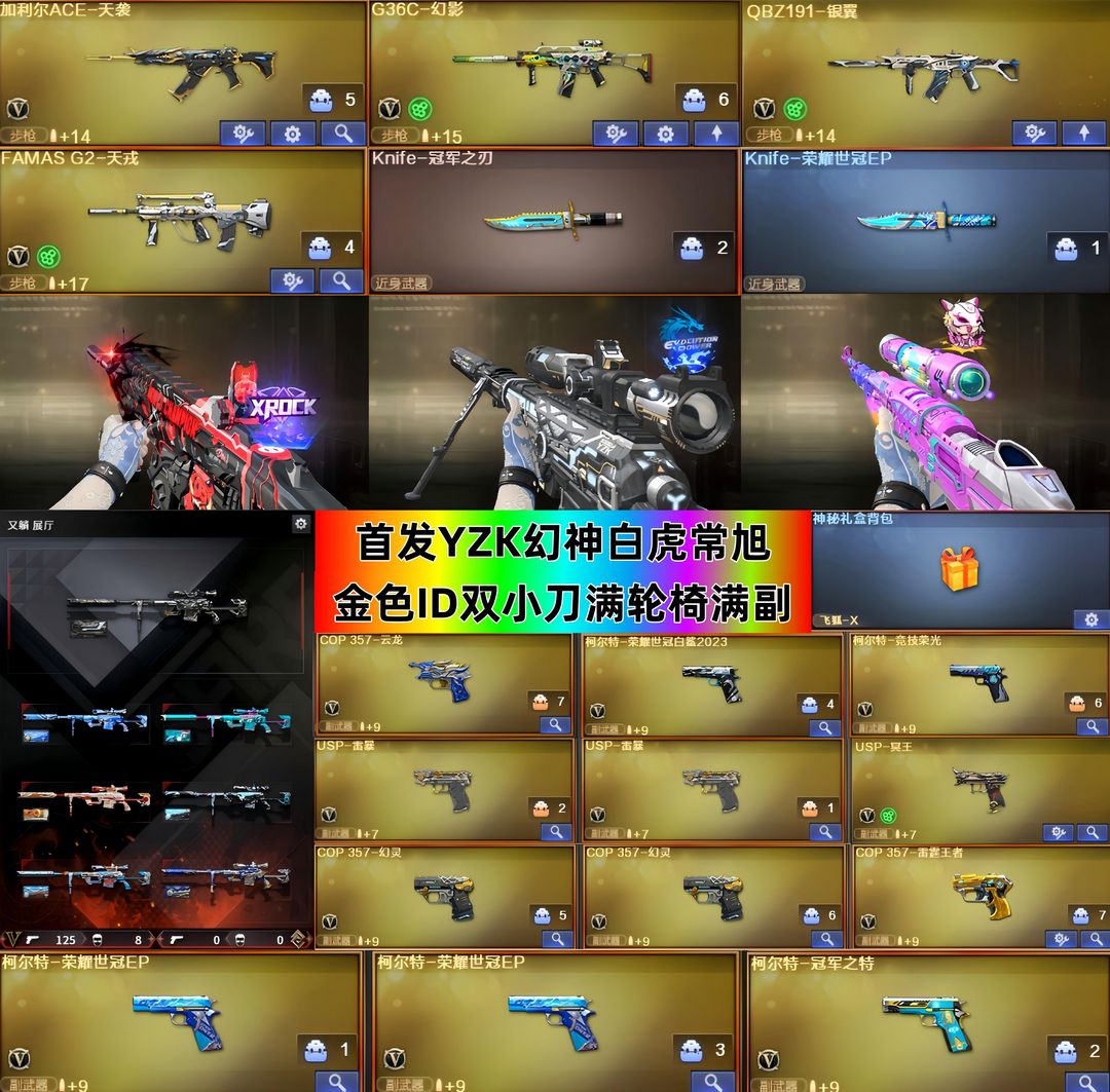 首发YZK幻神白虎常旭❤️双小刀加利尔G36C❤️双幻神音效15质量皮❤️金色二字ID三柯尔特满副