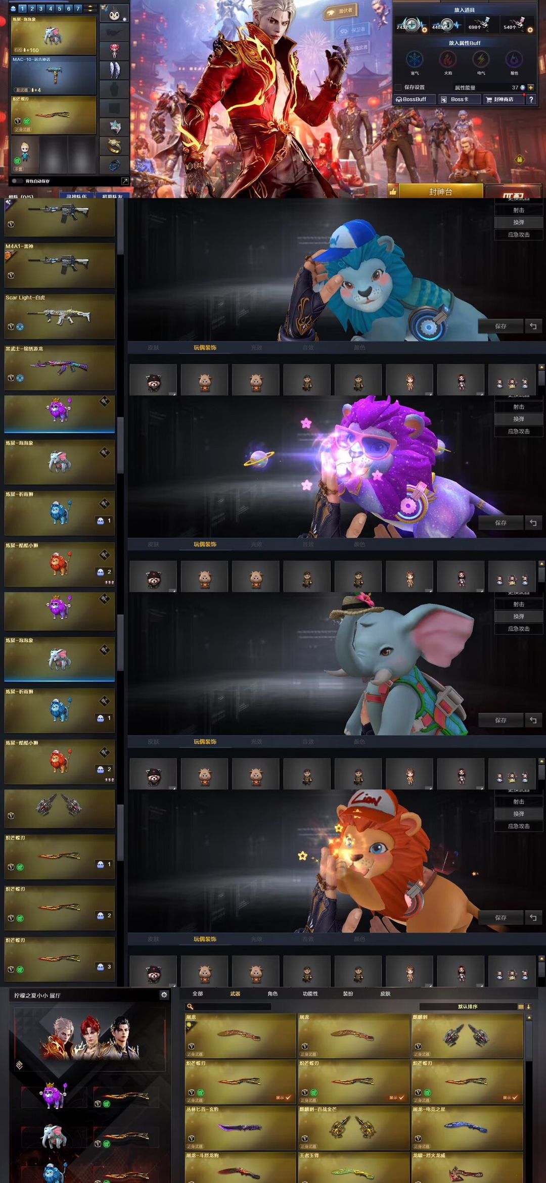 装备描述:生化顶级天花板 ;传说神威莲华生化最高级别-以打生化为主。大家不要乱刷属型。新加3把蝴蝶刀泡泡象国王狮、够你们背包来回切换/神威莲华生化最强 角色奇幻炼狱狮1800发----V角色每天都有一次免费选择属性的机会,四防英雄角色司雨影豹六防葵生化常用属性【生化背包变更,捕食者之眼-无需换弹,狂暴化,移动速度,生存本能】、尽量换这几个生化属性,老铁们可根据需要选择其他角色刷属性,觉得好的老铁们可进行收藏账号,收藏之后在租号玩网页版或手机APP上租号能便宜很多,注各位玩的开心,快乐