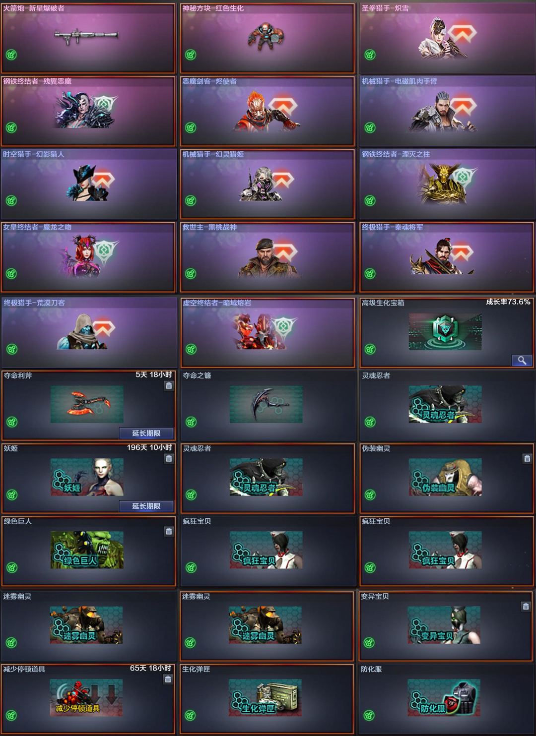 炼狱国王鬃狮炼狱泡泡象八面凌龙影煞荆棘龙宝双炽芒蝶刃蝴蝶枪娘双蛇影双骄飓风双雄天戎冥王灵眸幻影幻神音