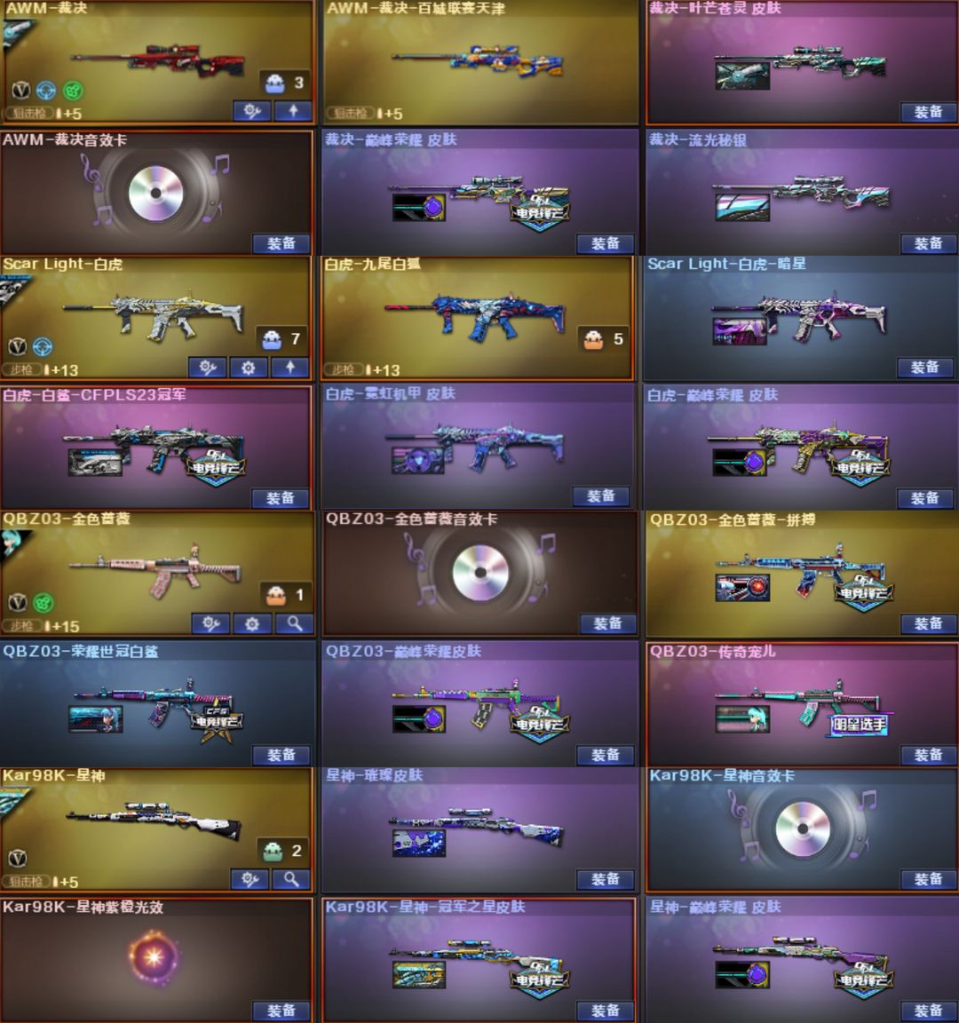 幻神光海幽瞳灵眸圣谕幻影⭐幻神卡星火宠儿欧欧11皮裁决卡3皮⭐QBZ卡宠儿5皮⭐白虎白鲨4皮⭐满副手