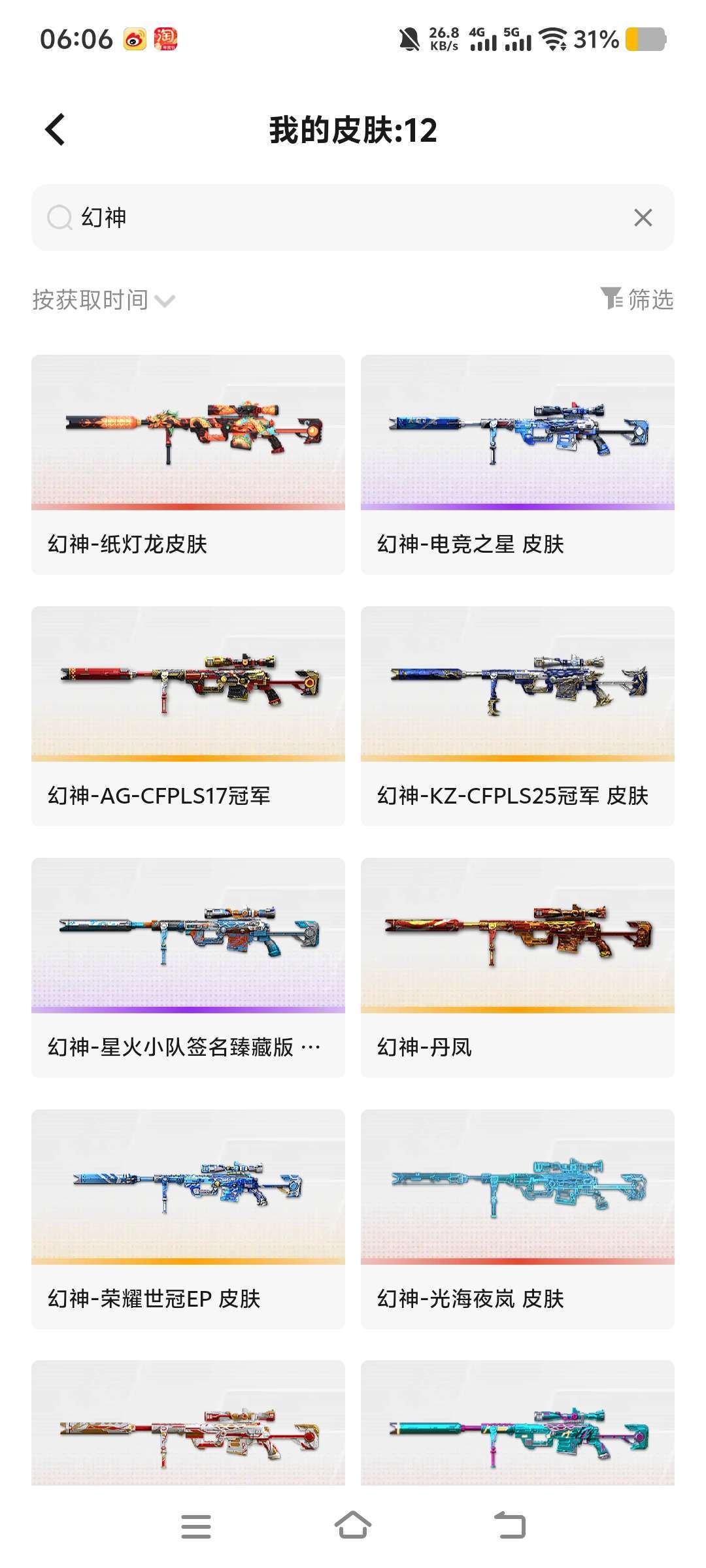 幻神光海12皮+传说星骇/妮妮/鹰+传说幽瞳+10周年雷神皮肤+狙击套+天戎/天袭/幻影/银翼