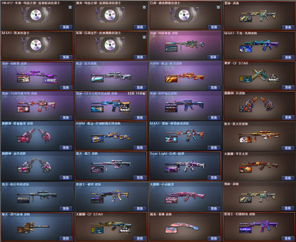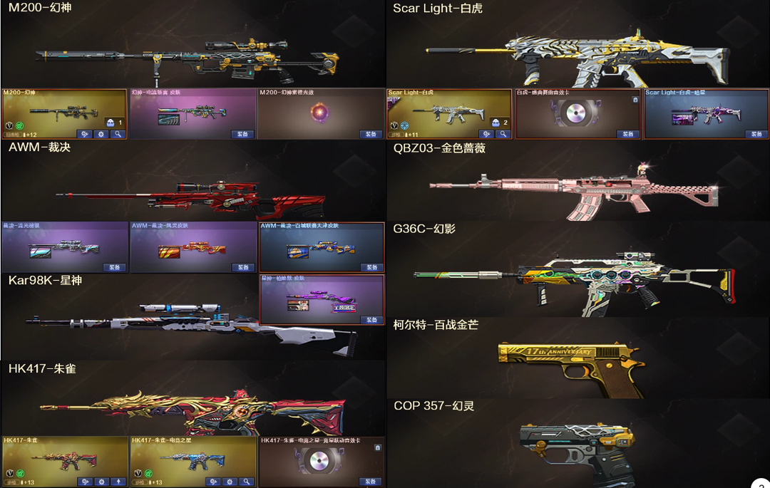 幻神电流+裁决凤灵秘银百城+星神枪娘☎白虎暗星音效卡+幻影QBZ朱雀+柯尔特COP☎4防零影豹+晴雅