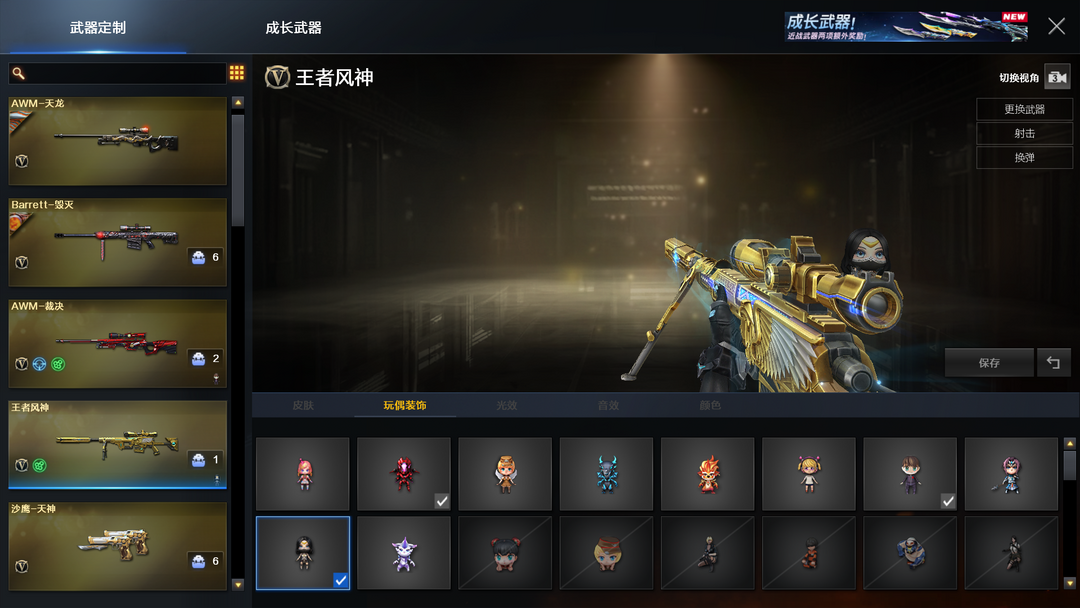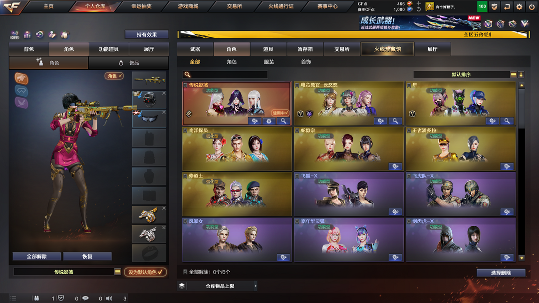 装备描述:王者星光;王者之势,王者风神 英雄武器:Barrett-极光;;;AWM-裁决;沙鹰-天神;M4A1-黑龙;高爆手雷-竞技荣光;烟雾弹-竞技荣光;Barrett-毁灭;闪光弹-竞技荣光;擎天-竞技荣光;炽芒蝶刃;手雷-热带奇洋;USP-雷暴;高爆手雷-雷暴;烟雾弹-雷暴;闪光弹-雷暴;斩神刀-雷暴;黑武士-锦绣游龙;屠龙;AWM-天龙;无影-神兵利器;AK47-火麒麟;M4A1-雷神 角色:电竞教官-云悠悠;隼;传说影煞;幻影;复仇者;威锋;烈锋;救世主-X;剑齿虎;灵狐者-职业经理;剑齿虎-X;圣诞潘多拉-X;风暴女;木兰;嘉年华灵狐;王者潘多拉;猎狐者-X 道具:M4A1-雷神音效卡;M4A1-雷神蓝粉色光效;防化服;变异宝贝;绿色巨人;疯狂宝贝;生化弹匣;夺命之镰;超级背包;闪光护目镜;烟雾保护头盔;彩蝶之翼;M4A1-雷神蓝粉色光效;小萝莉;兔子发带;天使之翼;防弹头盔;手雷包;防弹衣;C4工具钳;防弹头盔;C4工具钳;手雷包;防弹衣;防弹头盔;C4工具钳;手雷包;防弹衣;防弹头盔;C4工具钳;手雷包;防弹衣;防弹头盔;C4工具钳;手雷包;