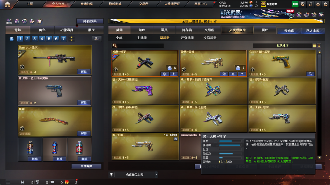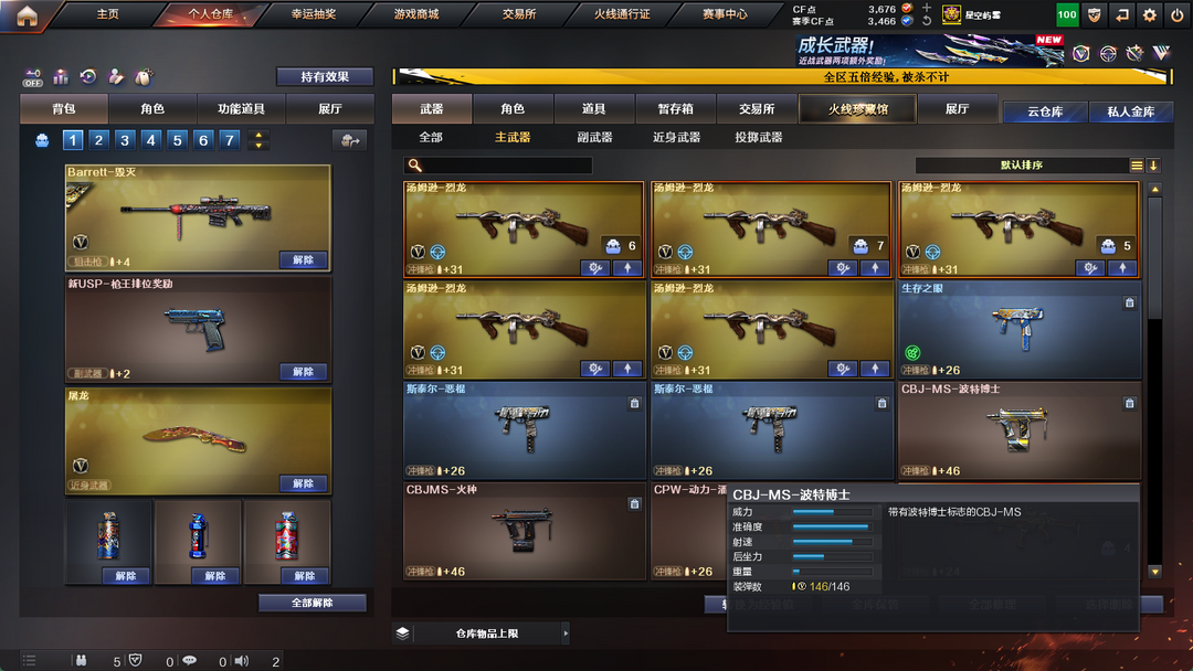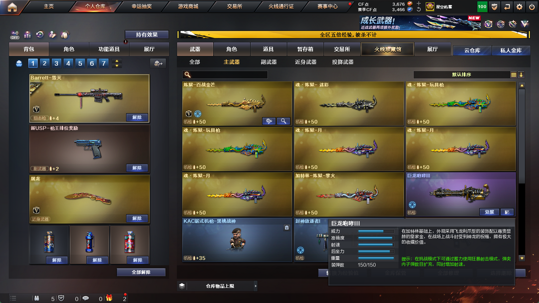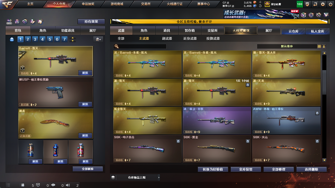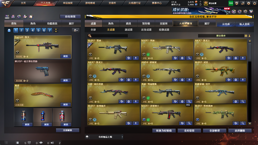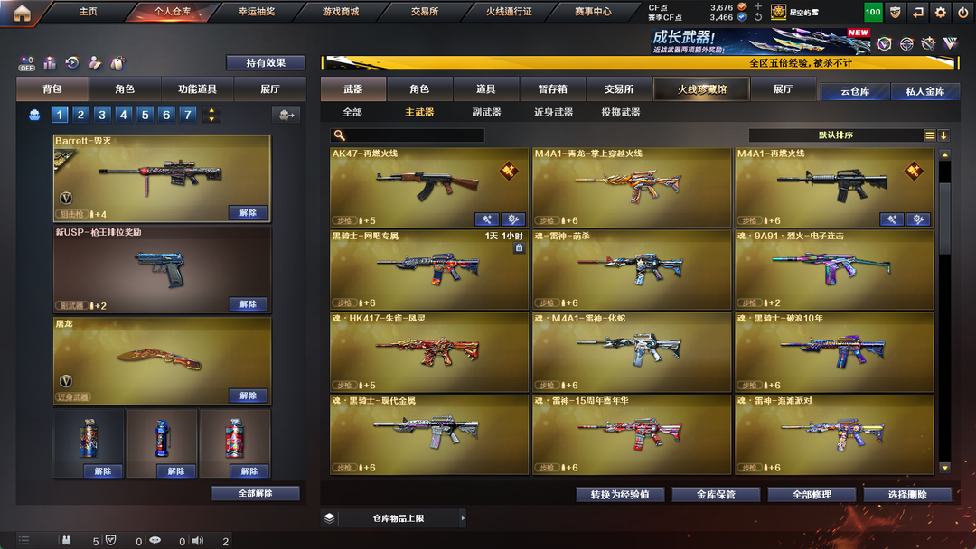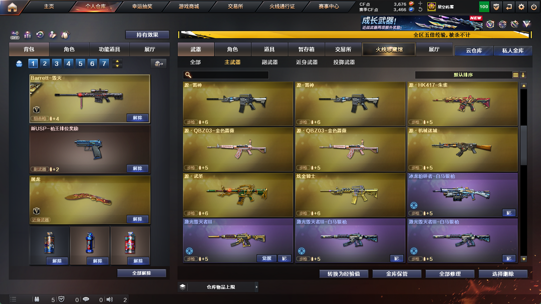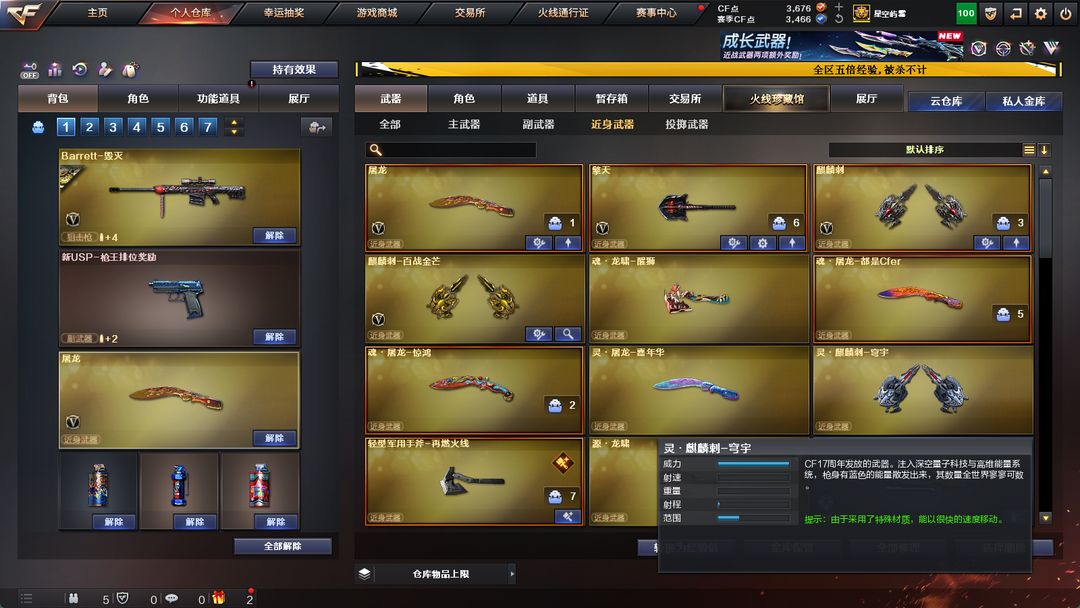 装备描述:王者武器:炫金骑士;炫金毁灭 英雄武器:M200-幻神;机械迷城-穹宇;AWM-裁决;无影-神兵利器;汤姆逊-烈龙;AN94-超新星;M4A1-武圣;Glock18-武圣;M4A1-死神;M4A1-玫瑰精灵;AWM-天龙;擎天;麒麟刺;Barrett-极光;沙鹰-修罗;AK47-黑武士;沙鹰-天神;M4A1-雷神;Barrett-毁灭;屠龙 角色:葵;樱;猎狐者;飞虎队;刀锋;幻影;复仇者;堕天使;兰;夜玫瑰;陈龙野-X;陈龙野-Y;娜塔莎;救世复仇;救世主;精英部队;灵狐者;烈锋;王力宏;兰-海滩派对;影武者;影武者-X;救世主-X;妲己;麻雀;剑齿虎-X;圣诞潘多拉-X;代号:翼;潘多拉-锋芒精英;风暴女;木兰;嘉年华灵狐;狐妖儿;狐妖儿;智影;疾风;金戈 道具:手枪弹匣;冲锋枪弹匣;步枪弹匣;彩色昵称;超级背包;机枪弹匣;闪光护目镜;C4工具钳;手雷包;防弹衣;防弹头盔;烟雾保护头盔;灵魂忍者;AWM-裁决音效卡;泉枢动力水壶;绿色巨人;疯狂宝贝;防化服;C4工具钳;手雷包;防弹衣;防弹头盔;弦波科技无线电;听风战术耳机;智眸战术目镜;背包-洛丽塔;炫彩背包-诺拉;C4工具钳;