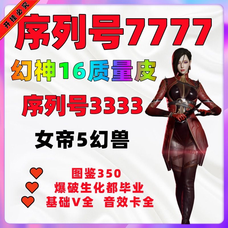 挂必究:女帝5幻兽⭐幻神16皮⭐幻星裁带卡⭐图鉴350⭐双序列号黑7777白3333⭐音效卡全