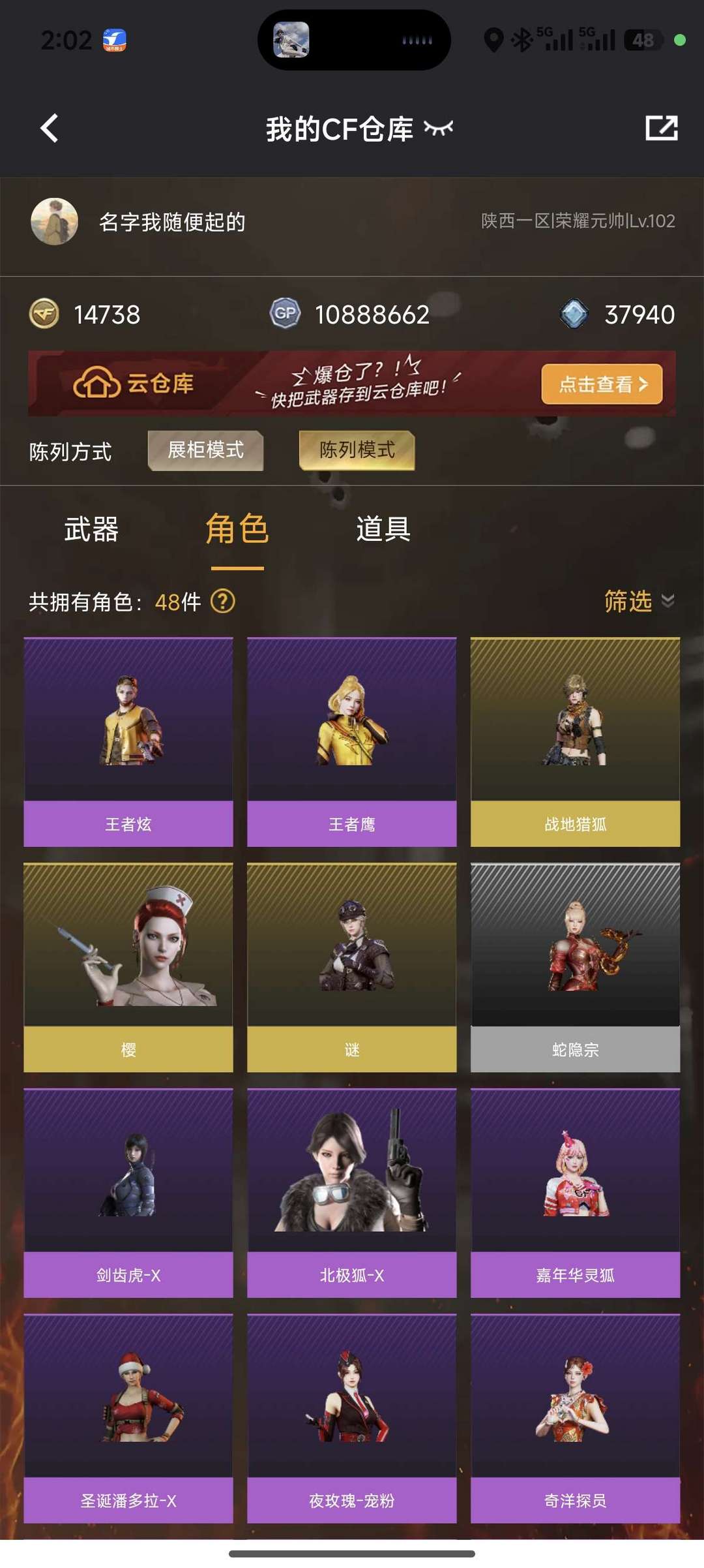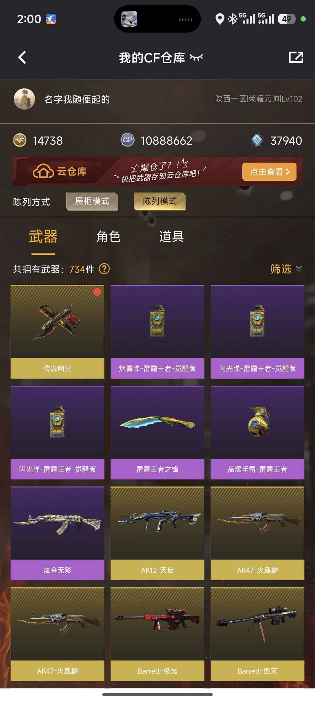 游戏区服:穿越火线-电信区-陕西一区