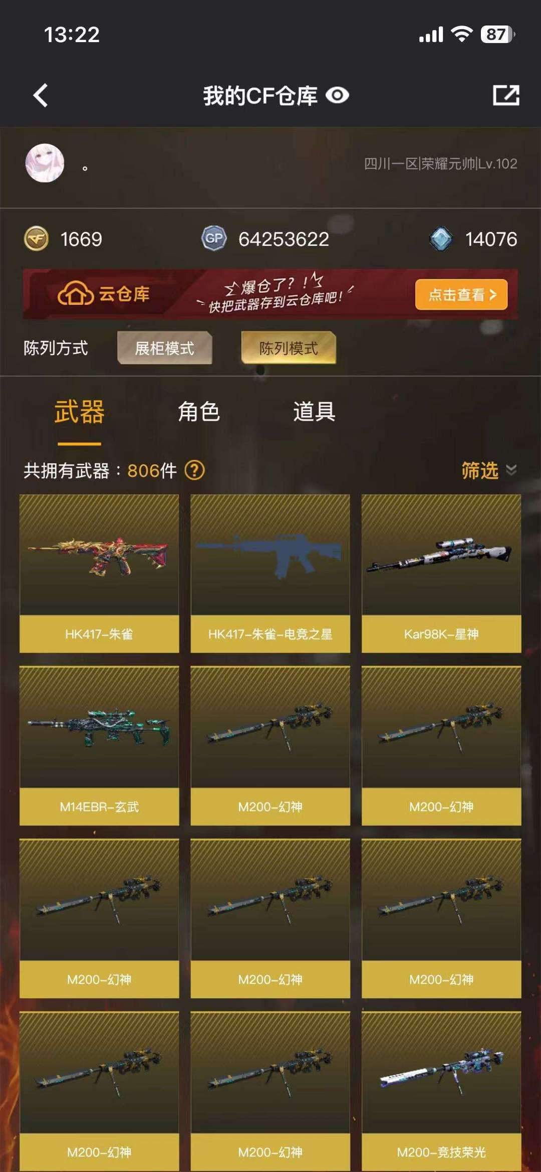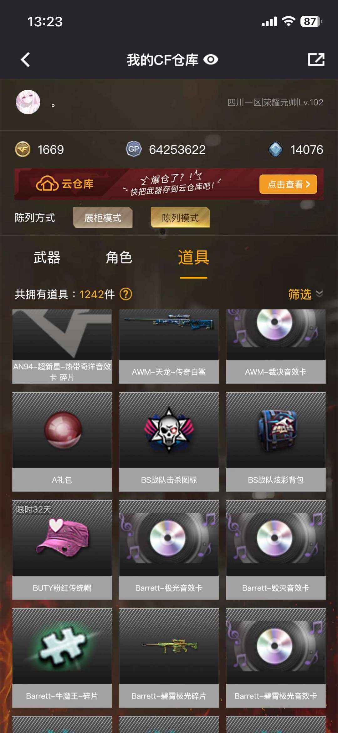 装备描述:所有音效卡都有,全部模式拉满全是三件套幻神皮肤