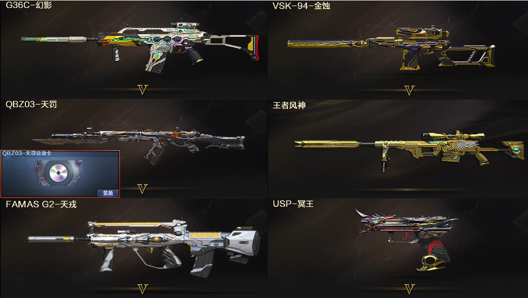 幻神新AG风神+裁决巅峰异化音效卡❤白虎3皮暗星大汉白鲨+幻影QBZ天罚天戎玄豹金蚀冥王❤4防春魅影