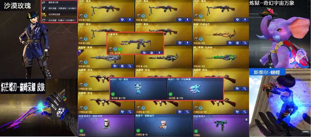 粉泡泡象6盘6烈蝴蝶/枪娘(八面凌龙)生化背包变更沙漠玫瑰⭐炽芒蝶刃巅峰皮丨白虎电玩蓝兔玄豹竞技荣光