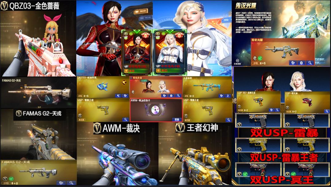 2传说女帝⭐王者幻神裁决音效卡2皮丨蔷薇天戎⭐7usp雷暴冥王丨白虎凌虎星神玄武⭐6盘6烈蝴蝶清道夫