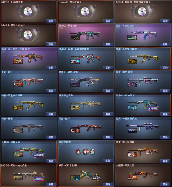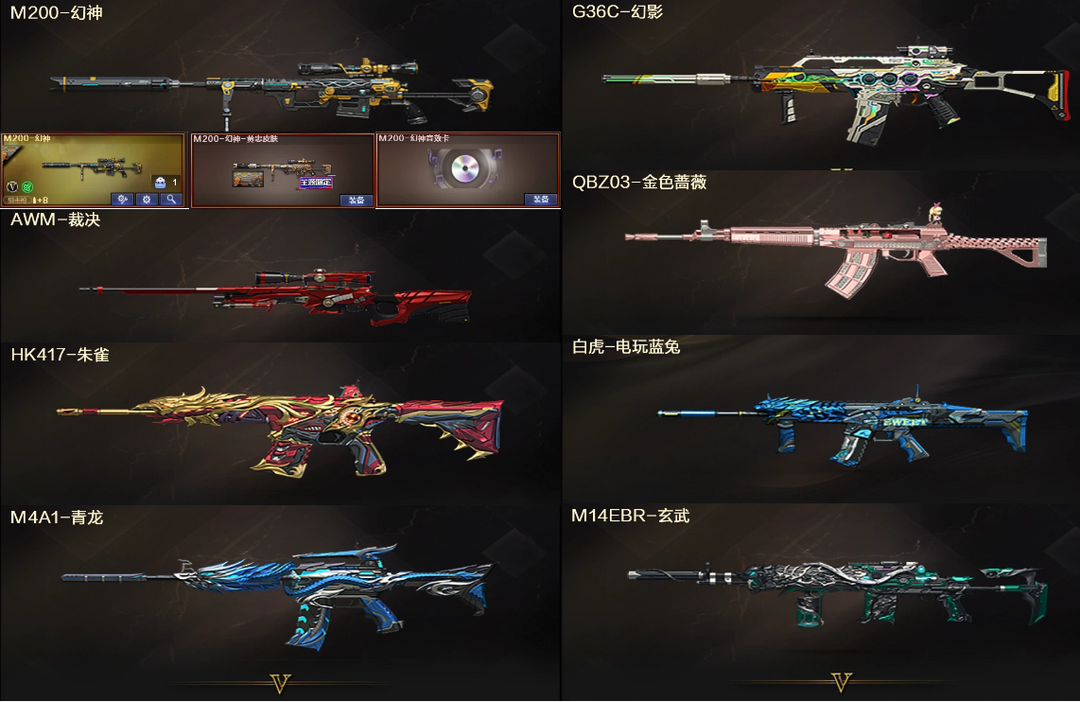 爆破❤幻神黄忠音效卡+裁决❤G36C幻影QBZ蔷薇白虎电玩蓝兔+朱雀玄武青龙❤4防雨棠关小雨+6烈龙