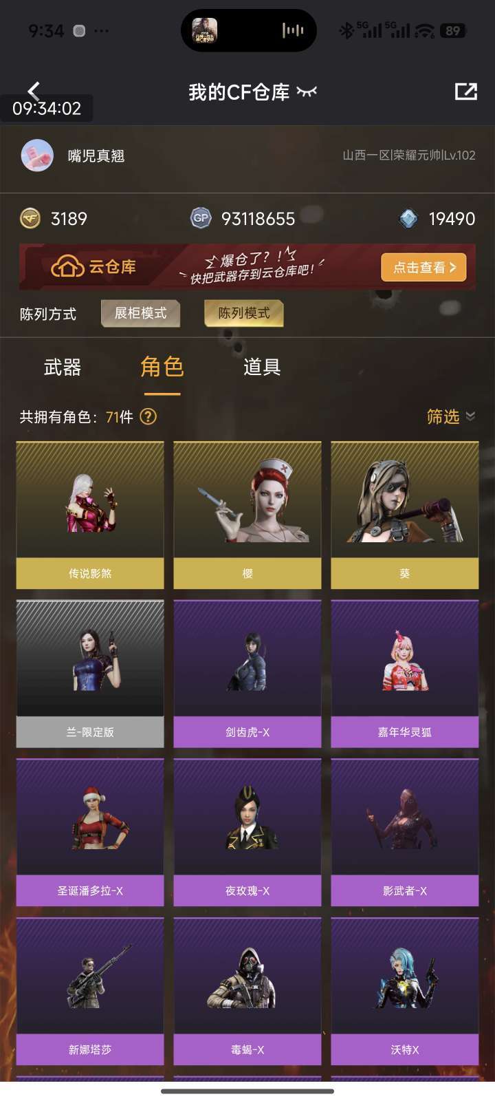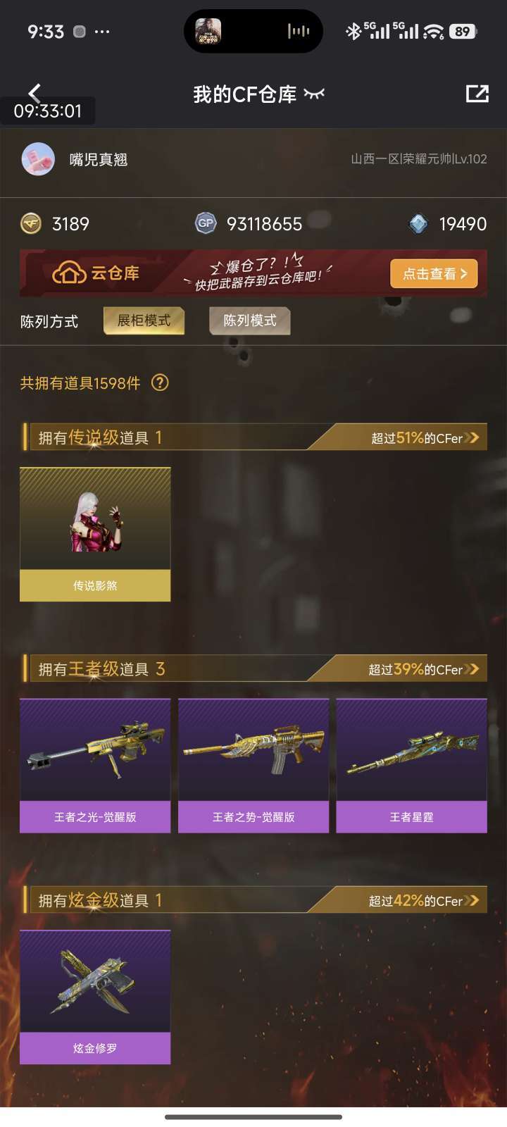 传说影煞,樱,葵,王者装备3件有王者星霆,幻神m200,有六烈,