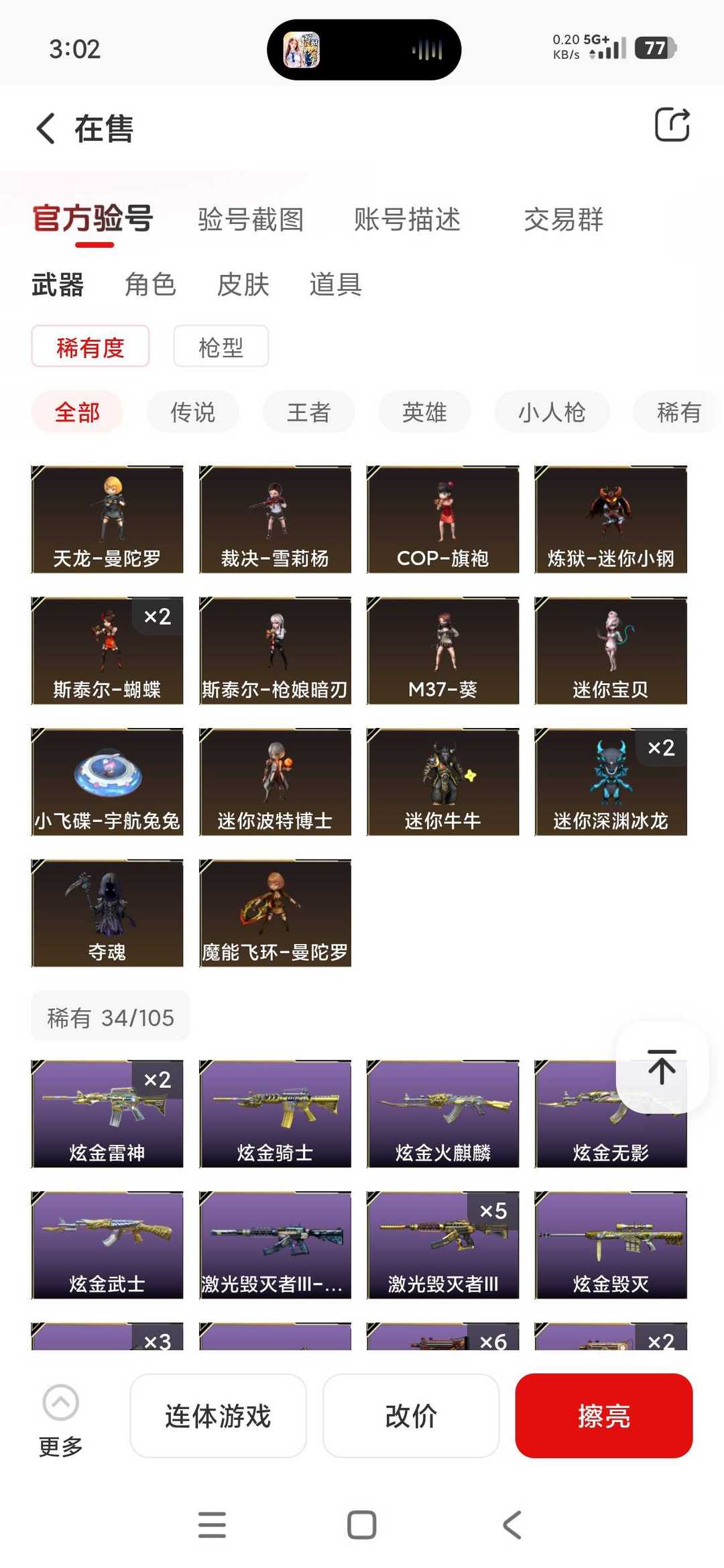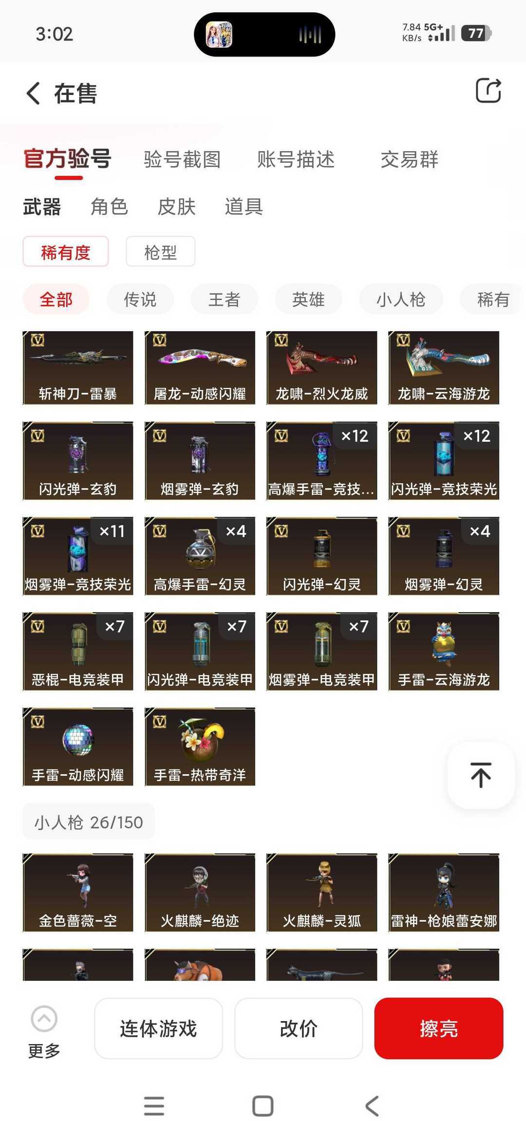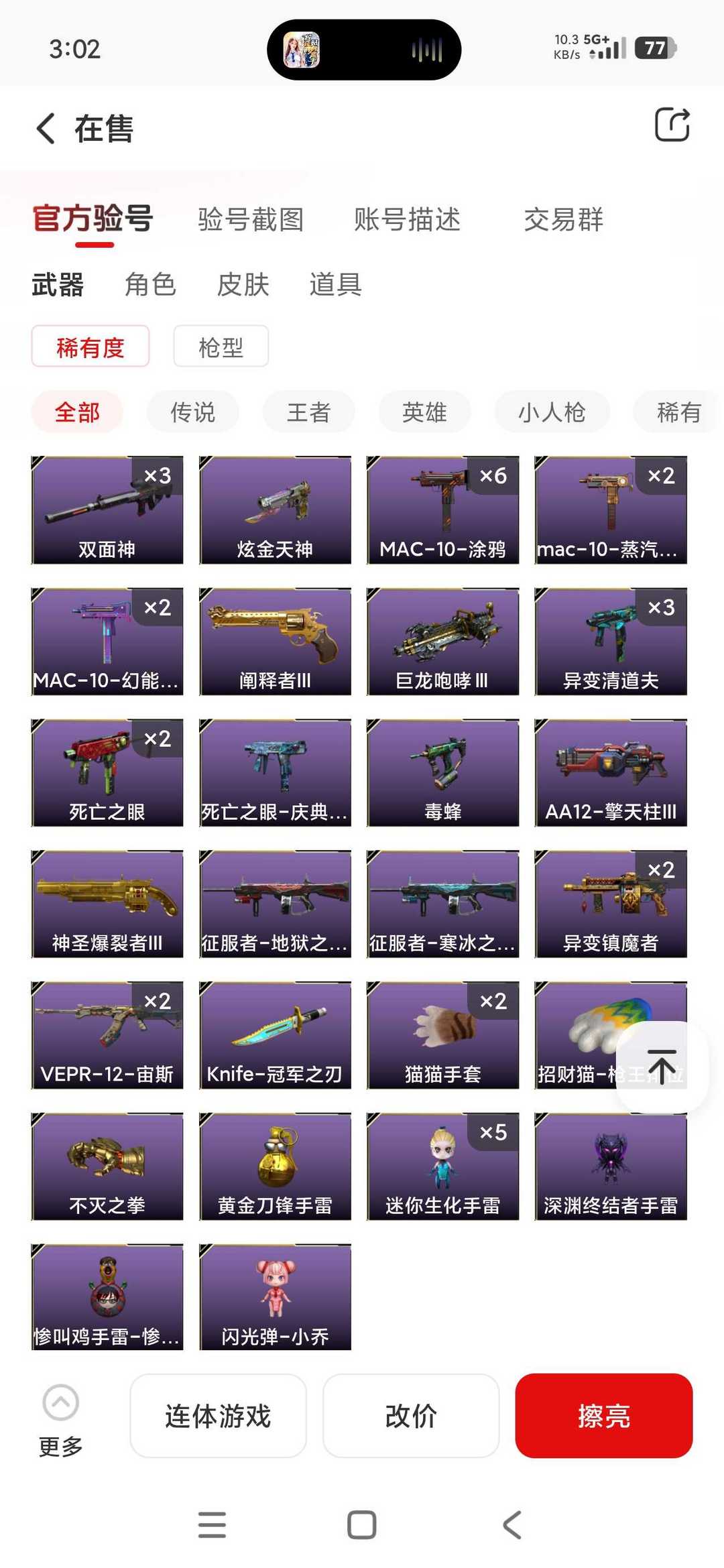 限制: 租号10次及以上 |装备描述:东部生化爆破挑战账号:所有武器装备道具等请老板们直接看截图,真实有效截图上传平台。 未能截图到的武器装备道具等,还请老板们上号仓库自查! 欢迎老板们收藏租玩!!!