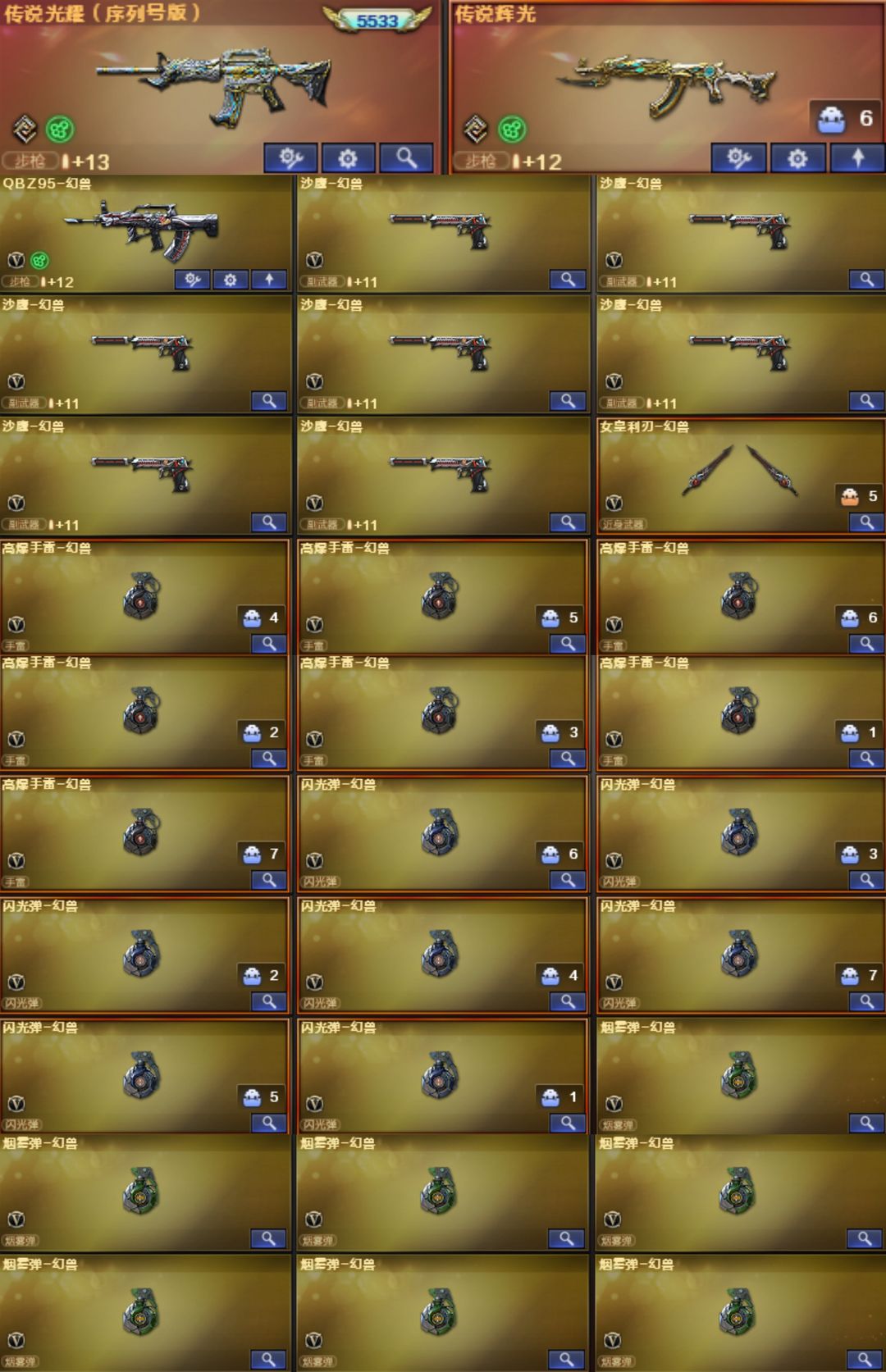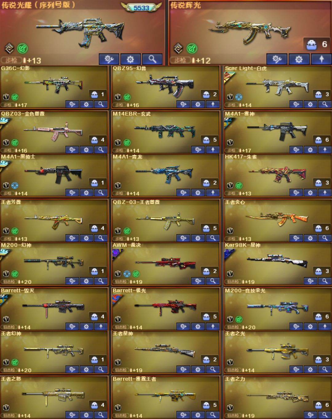7套幻兽光耀5533幻影⭐幻神卡kz冠幻CFS⭐裁决音效卡巅峰3皮⭐白虎AG3皮⭐QBZ冠薇星神璀璨