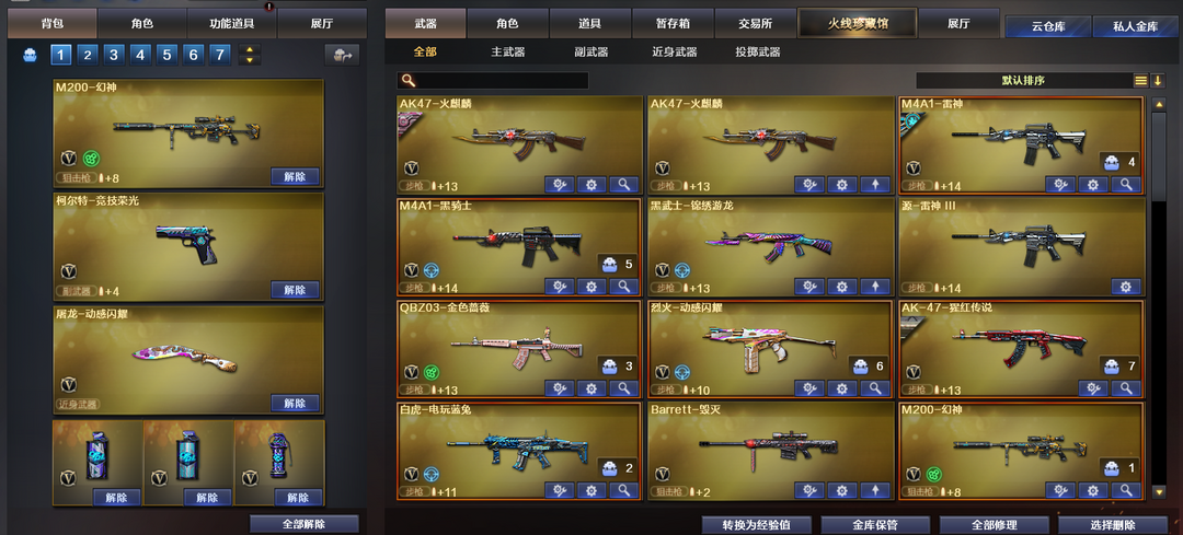 M200-幻神❤竞技荣光套装❤M4A1-战神赵云❤火麒麟-平天大圣❤QBZ-金色蔷薇❤白虎-电玩蓝兔