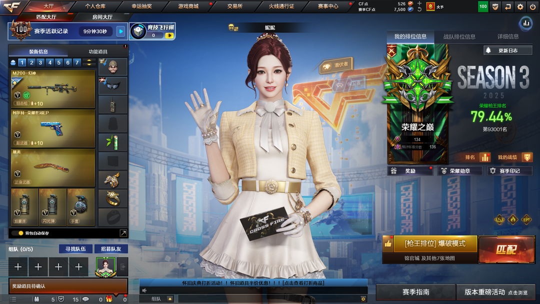限制: 租号3次及以上 |装备描述:王者武器:USP-雷暴王者;王者森力;王者凌虎;炫金天龙 英雄武器:AWM-裁决;机械迷城-穹宇;沙鹰-天神;M200-幻神;烟雾弹-竞技荣光;高爆手雷-竞技荣光;烟雾弹-云龙;闪光弹-云龙;QBZ03-云龙;COP 357-云龙;Scar Light-白虎;AN94-超新星;加特林-炼狱;无影-神兵利器;高爆手雷-神工天巧;AK47-火麒麟;M4A1-黑龙;M4A1-雷神;请游戏局内保持文明,防止禁言影响他人游戏,祝您玩得愉快!