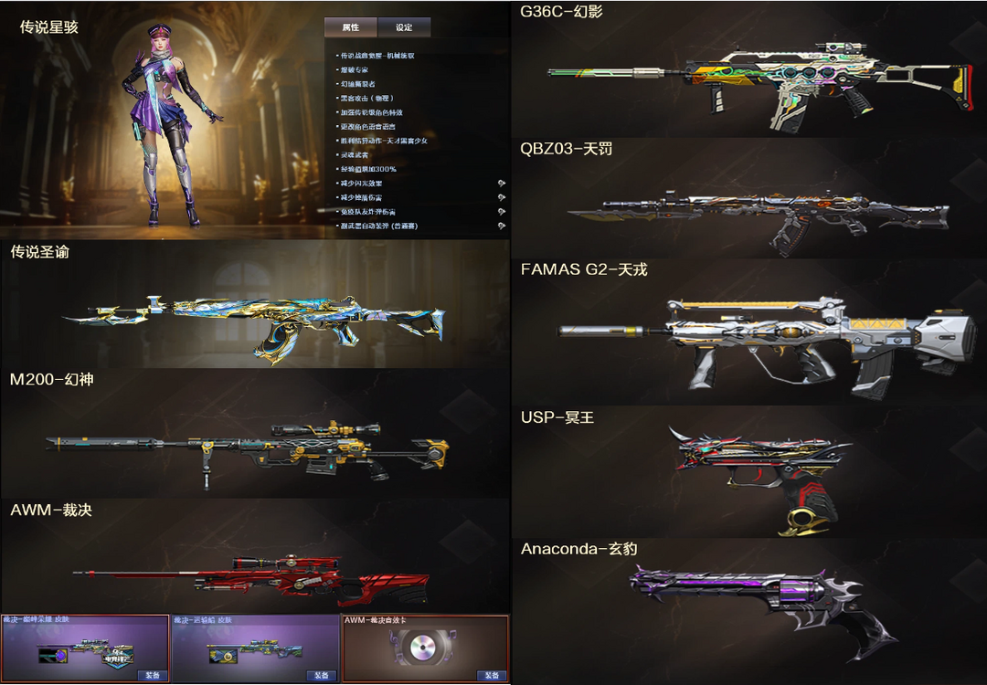 传说圣谕4防星骇❤幻神+裁决巅峰荣耀运输船音效卡❤G36C幻影天罚天戎+USP冥王左轮❤4防机械姬