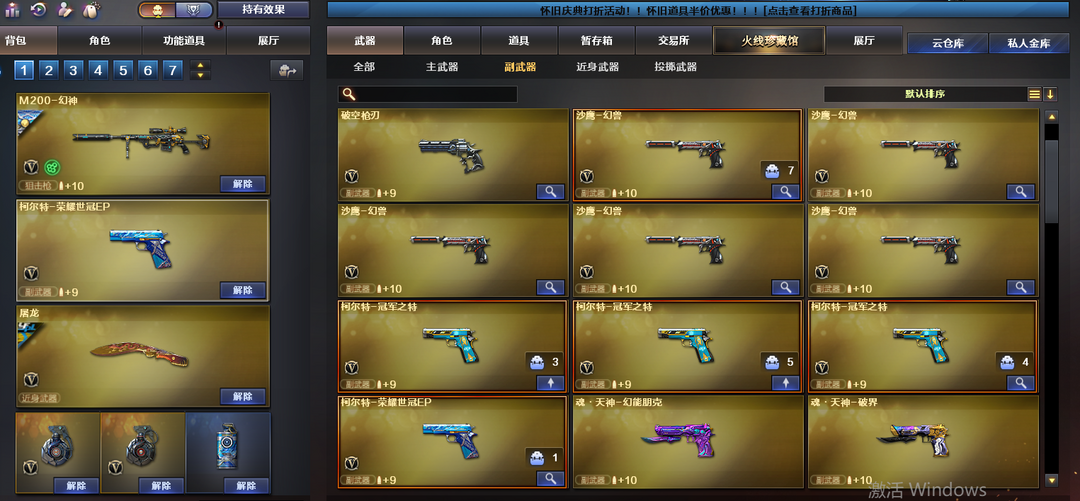 绝版十周年幻兽套。幻神ep套,3把冠军之特全套副武器,法玛斯天戎白虎qbz星神极品爆破号