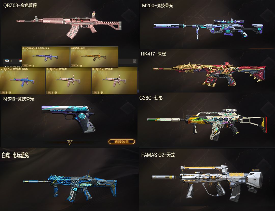 2传说✅传说辉光传说星骇✅幻神三件套(2皮)QBZ裁决三件套9皮✅朱雀幻影白虎竞技荣光6盘6烈