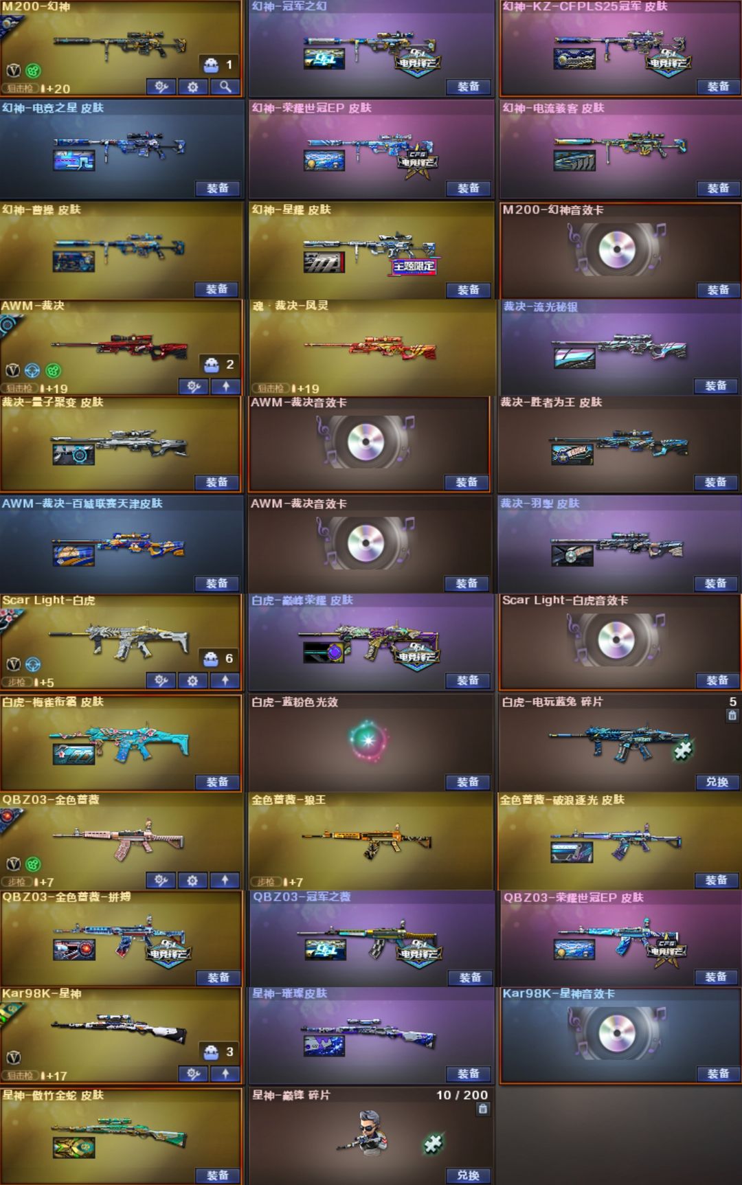 莲华圣谕幻影天袭天戎⭐幻神卡KZ冠幻EP7皮⭐裁决卡量子5皮⭐白虎卡巅峰梅雀⭐QBZ拼搏EP冠薇4皮
