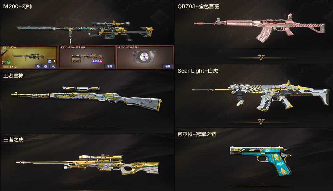 爆破生化✨幻神黄忠音效卡+王者星神裁决✨QBZ蔷薇白虎+冠军之特✨炼狱6盘龙+蝴蝶死亡6烈✨荒漠琉璃