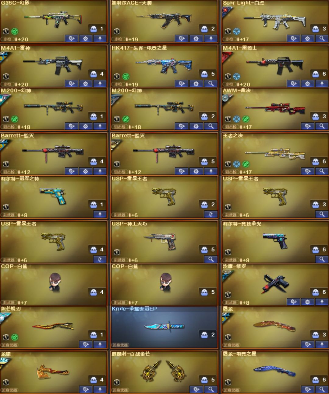 幻影天袭⭐双幻神⭐幻神传奇欧欧电流⭐裁决卡羽挚⭐白虎拼搏暗星⭐冠特⭐3雷暴王者⭐EP小刀⭐蝴蝶刀