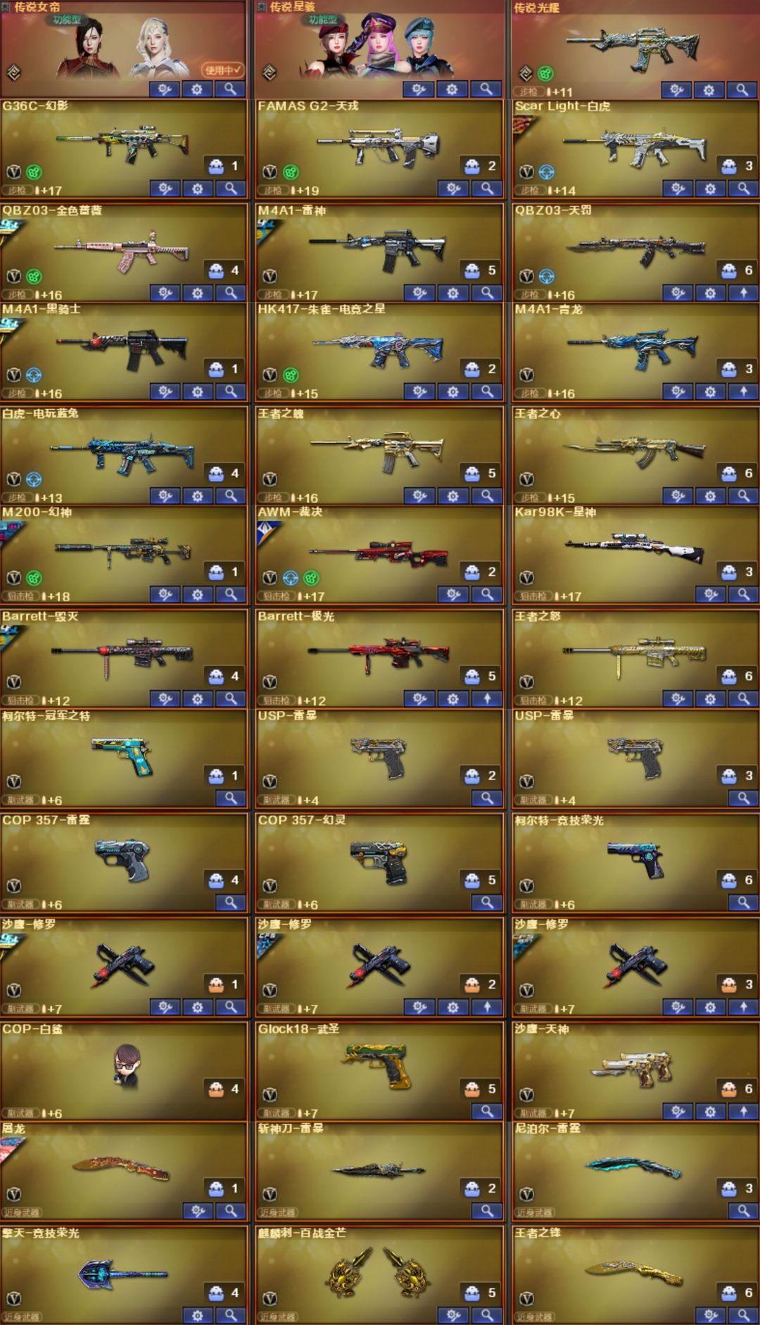 女帝星骇幻影天戎⭐幻神卡白鲨周瑜⭐裁决音效卡百城⭐白虎大汉风骨⭐QBZ冠薇白鲨⭐98K星神⭐满副手