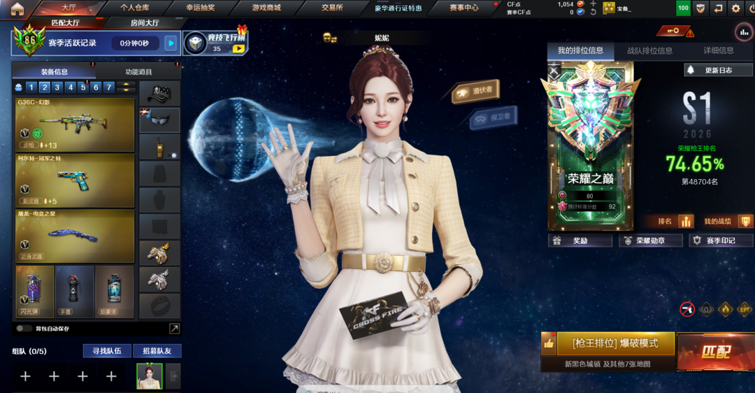 装备描述:爆破号,有G36C,幻神加四皮肤,三主流柯尔特,妮妮王者春等