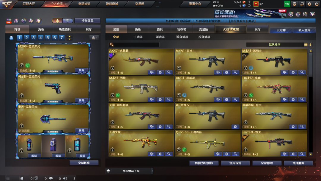 宗师5❤幻神竞技荣光全套装❤QBZ-王者蔷薇、王者火魄❤巅峰荣耀火麒麟6皮雷神4皮黑骑音效卡