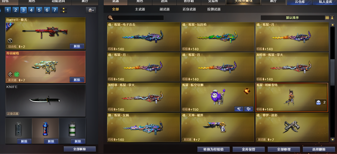 传说影煞➕传说破晓➕蝴蝶刀➕炼狱狮子航空导狮➕奇幻赋予卷➕六盘➕炼狱枪娘➕激光霹雳