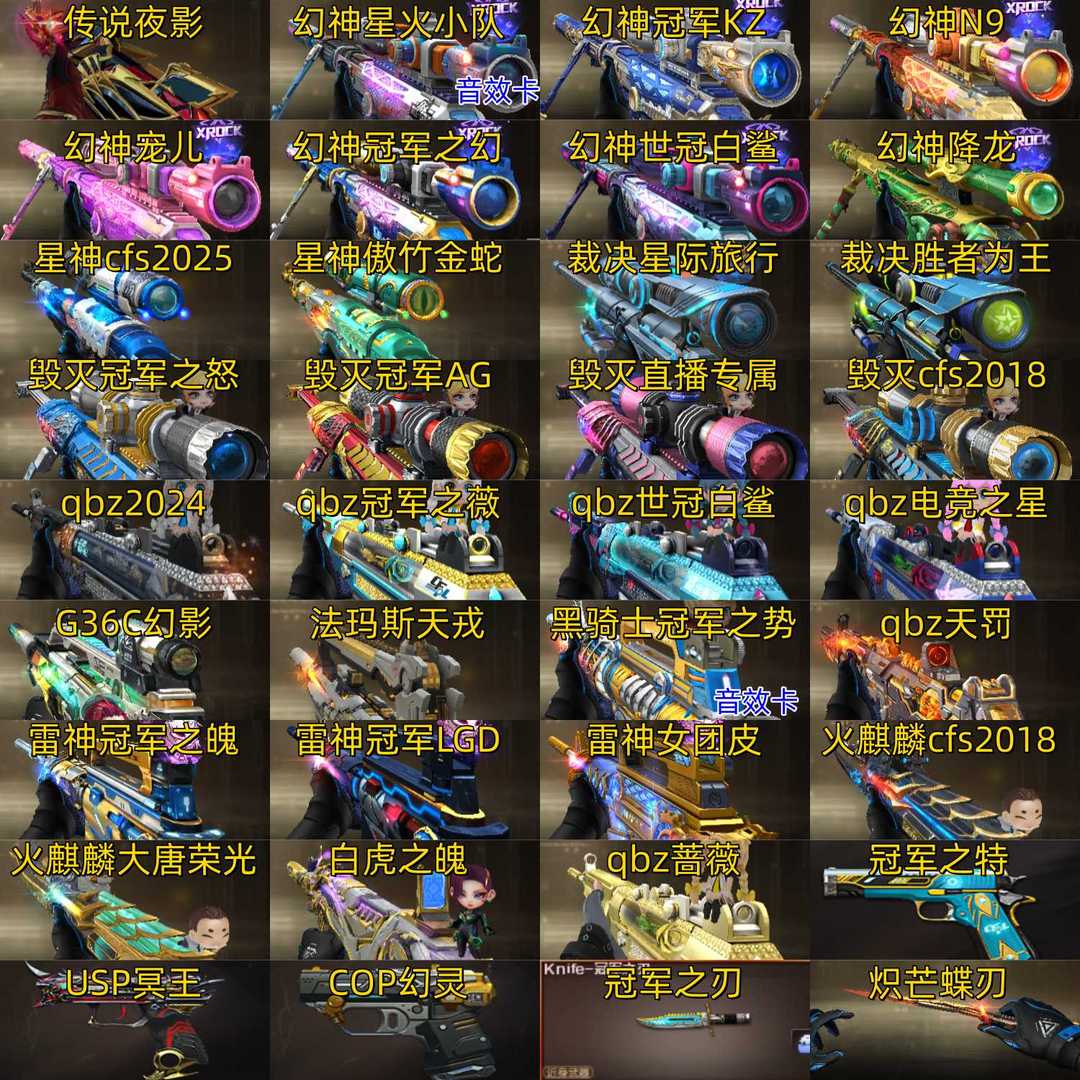 传说夜影/幻神7皮+幻神音效卡(星神小队+冠军KZ+N9+宠儿+冠军之幻+世冠白鲨+降龙)/星神cf
