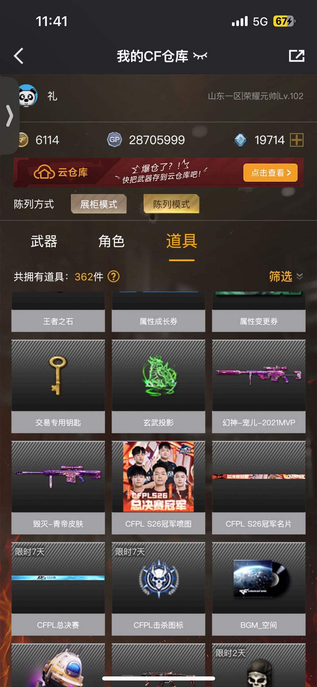 装备描述:幻神带宠儿皮肤/裁决带音效卡/白虎常旭皮肤/qbz/冥王usp/柯尔特无冕之王/4防职业经理