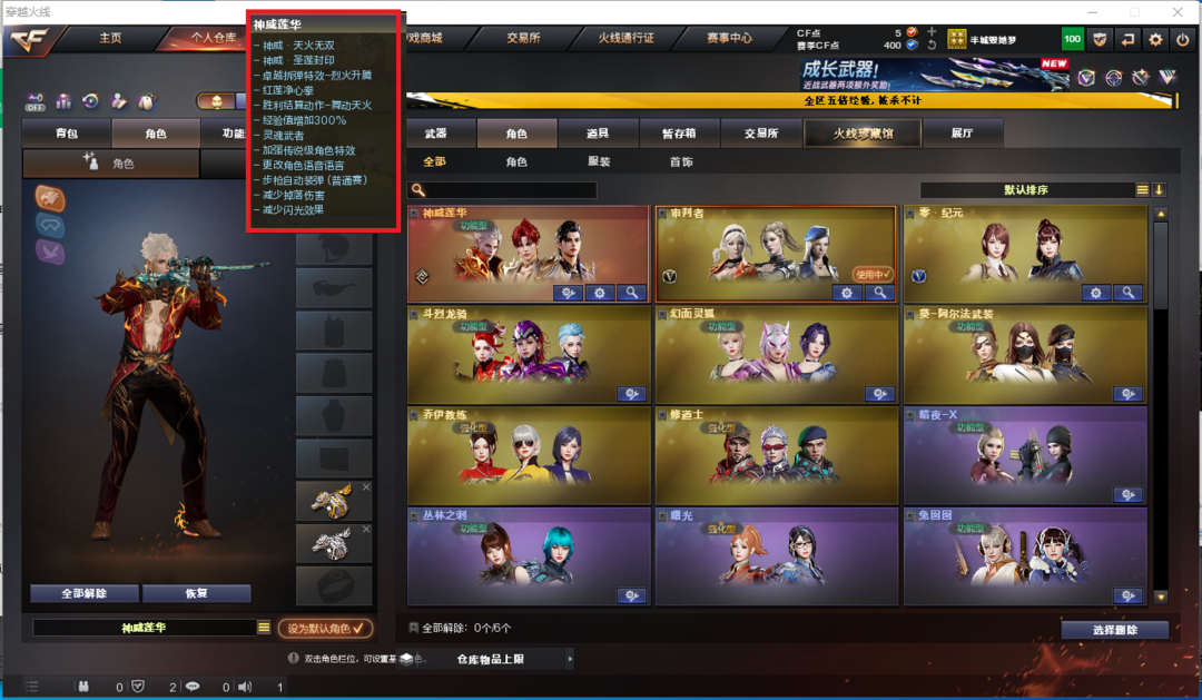 装备描述:排位:可以、、、、、、、、、、、爆破全装:裁决皮肤+裁决音效、USP冥王、传说圣谕、白虎、玄豹白虎、QBZ-独角-III、炽芒蝶刃、、、裁决音效、、、2套神工天巧、4套玄豹、、、(神威莲华)