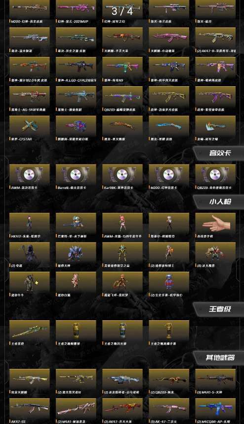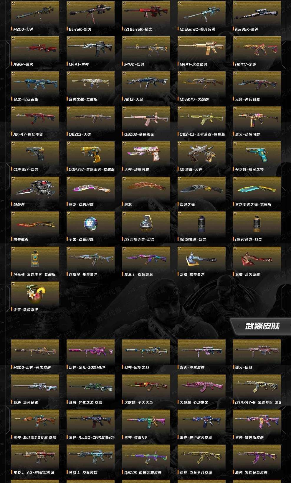 装备描述:幻神星神裁决都有音效卡,qbz皮肤加音效卡,白虎之魄,王者星霆,COP雷霆王者,冠军之特,冠军之刃,蝴蝶刀,传说影煞,手枪七包满V 禁止利用账号进行开挂、使用辅助违规软件诈骗等违规操作,违者必究