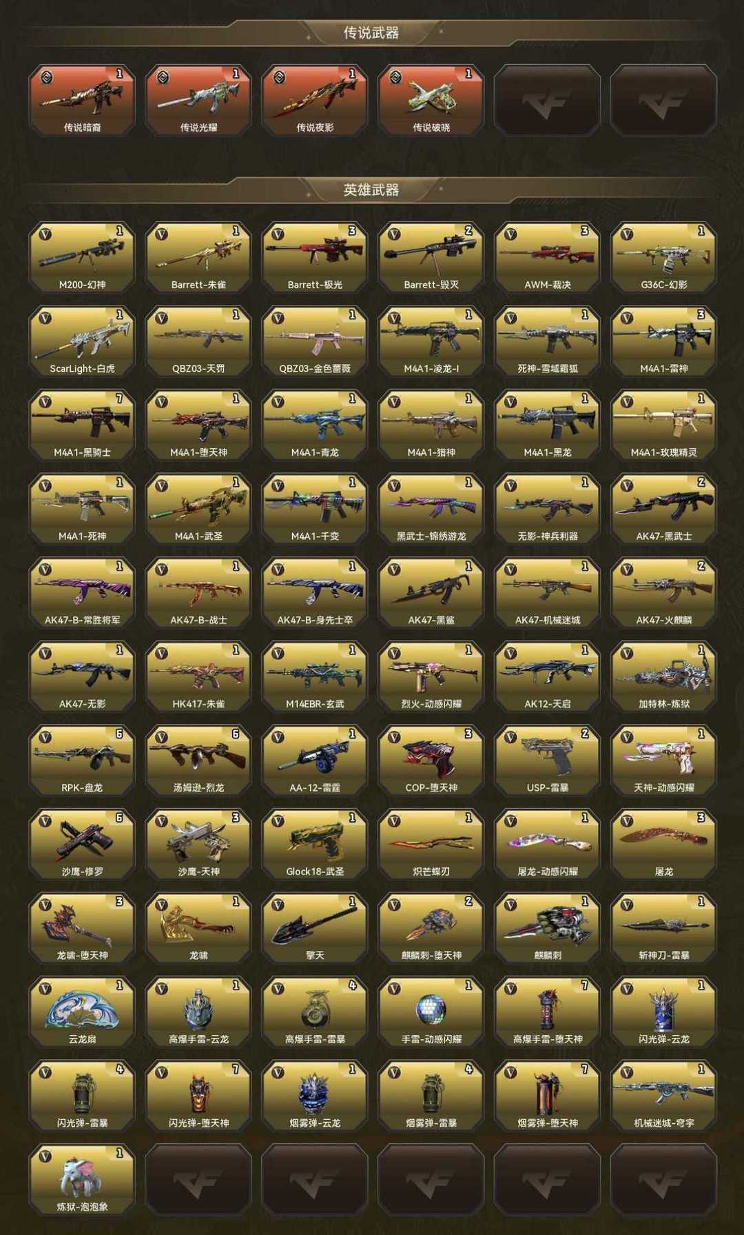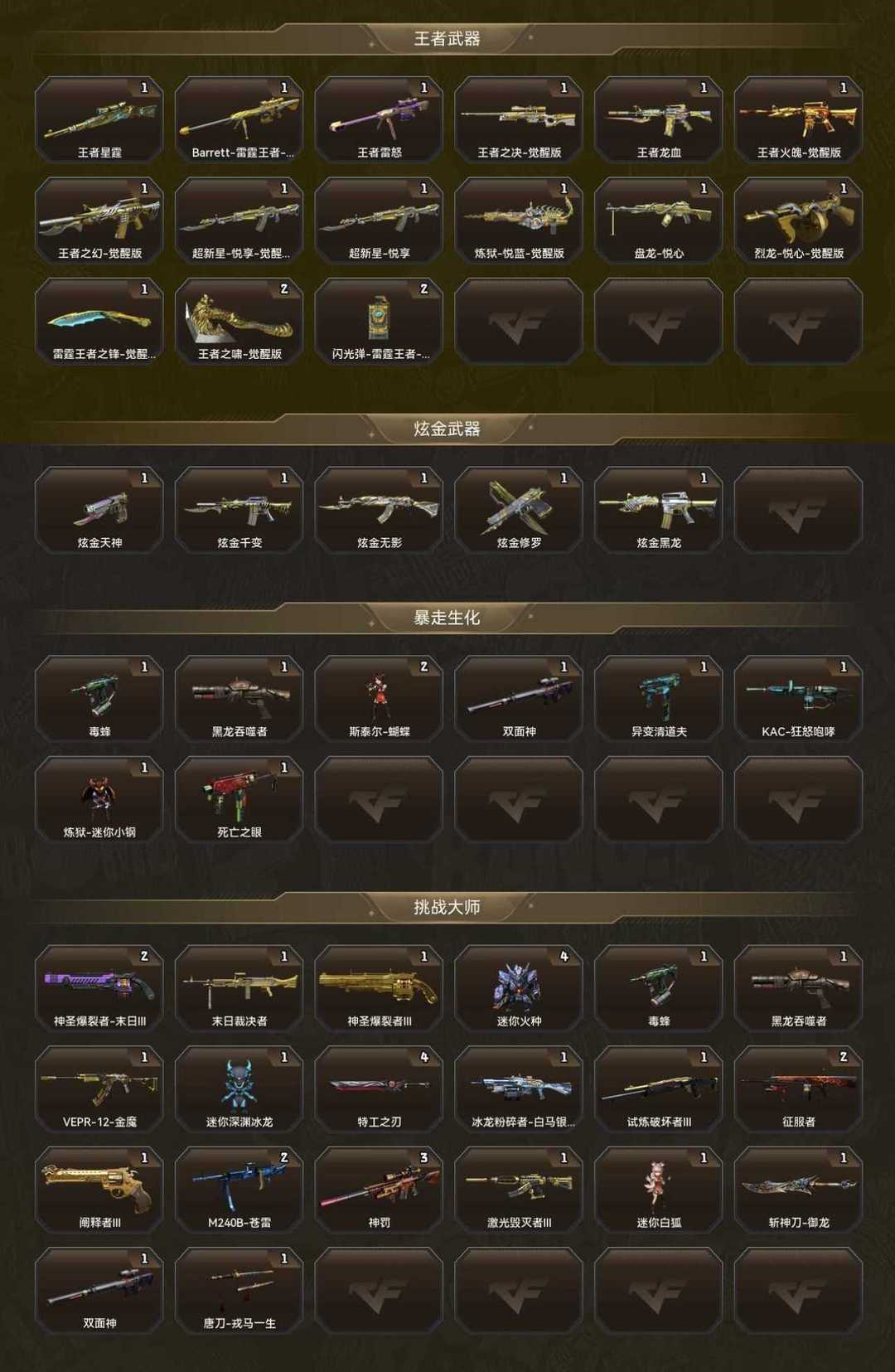 VIP6 144V 7传说 21王者 5炫金6烈6盘炼狱泡泡象毒蜂USP雷暴幻神传说武器4传说暗裔传