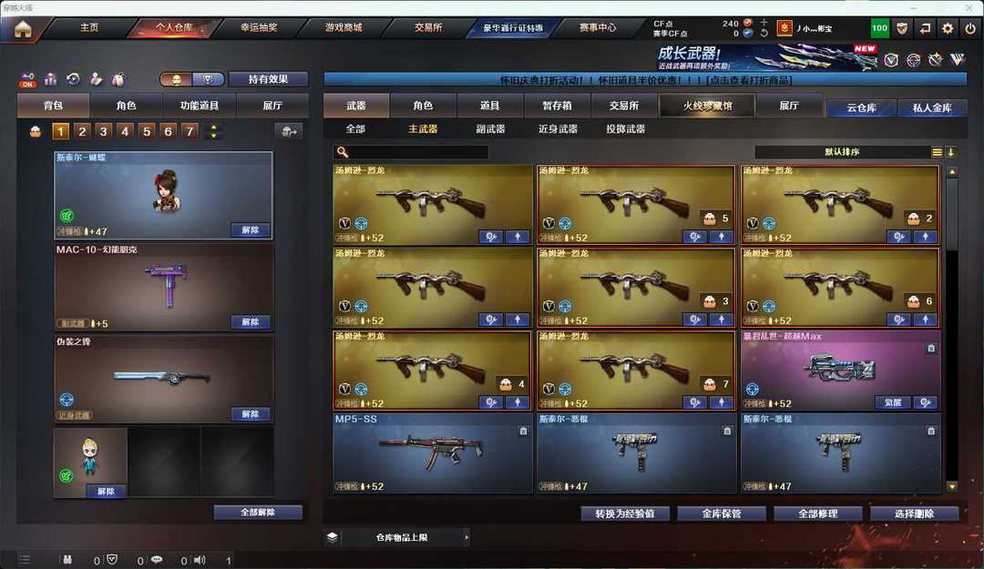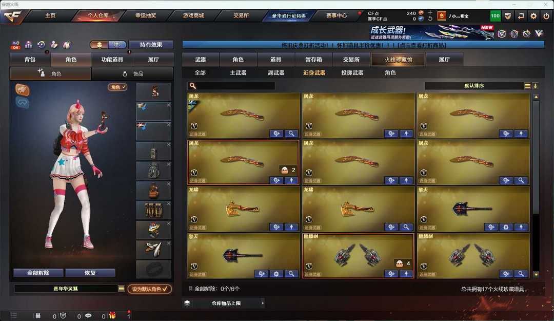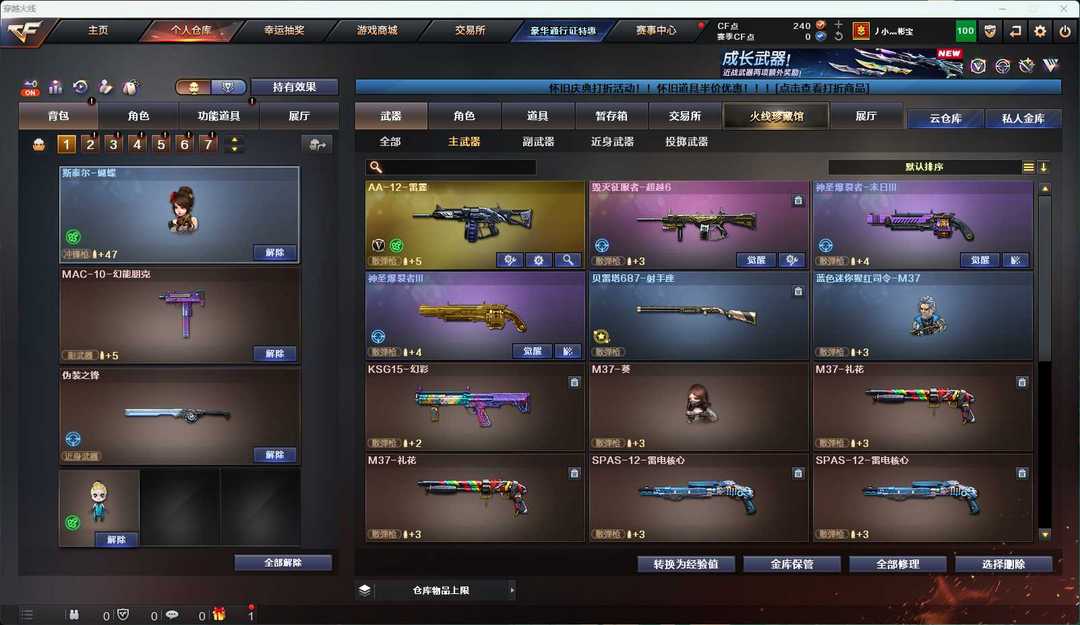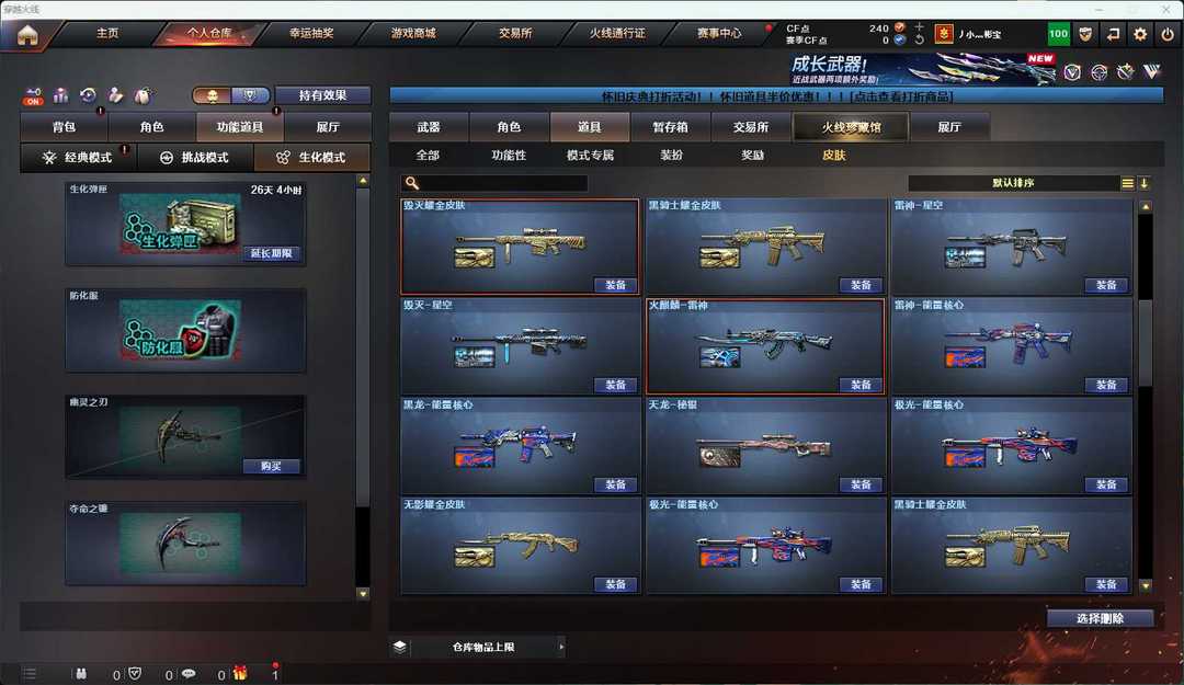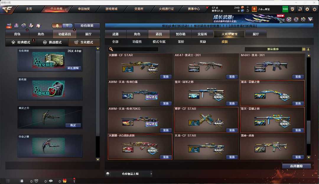 全游戏账号 幻神 朱雀 白虎 青龙 有雷暴套装 常用武器都有皮肤 可以排位 6盘6列