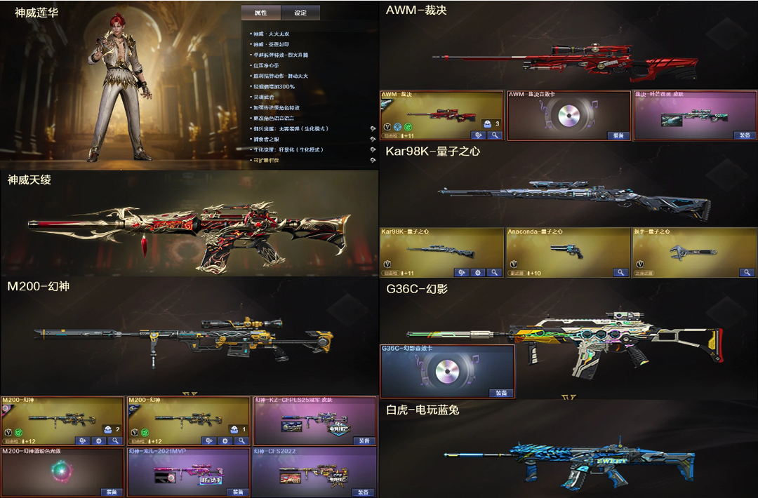 神威天绫神威莲华+小钢炼狱6盘♉幻神3皮宠儿+裁决白虎QBZ三件套+98量子套⚡✅幻影6满副炽芒鲨臂