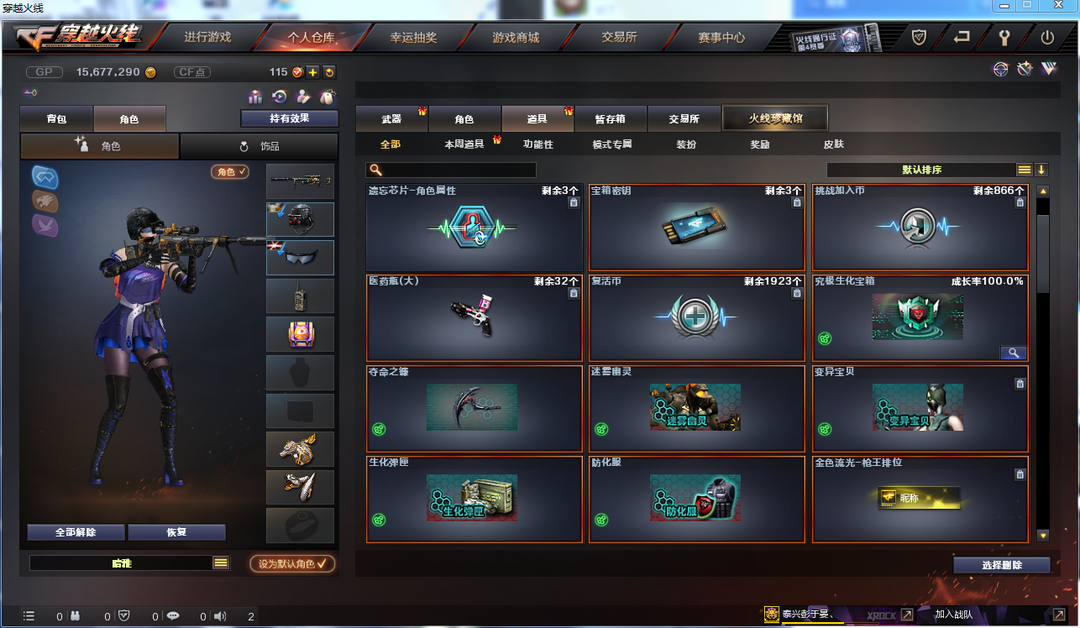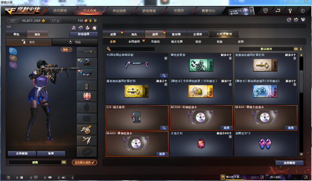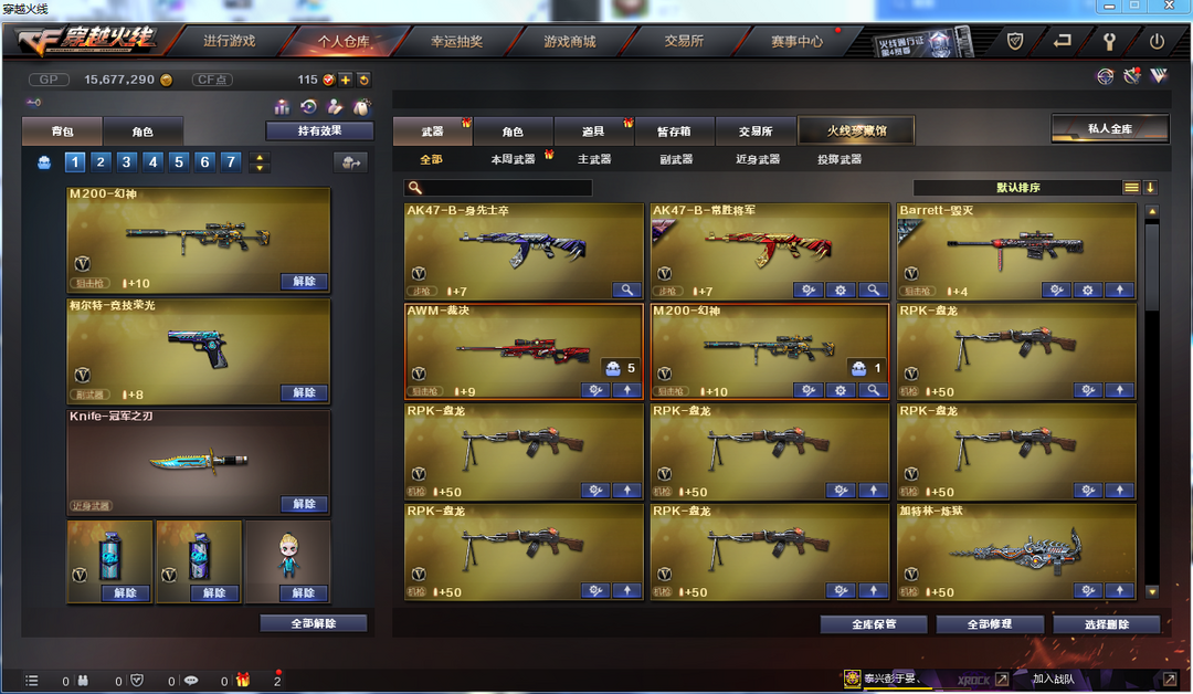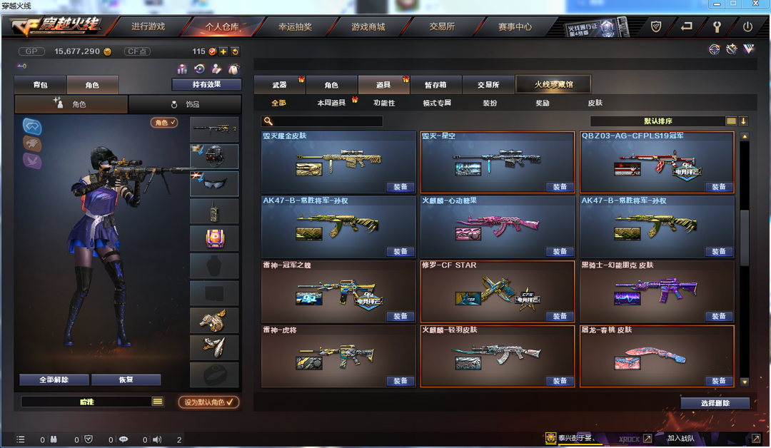 装备描述:幻神音效卡蓝粉光效6烈斯泰蝴蝶6盘炼狱生化套QBZ冠军魄刃轻羽虎将春桃星空耀金黄金鲨三音效卡荣光套