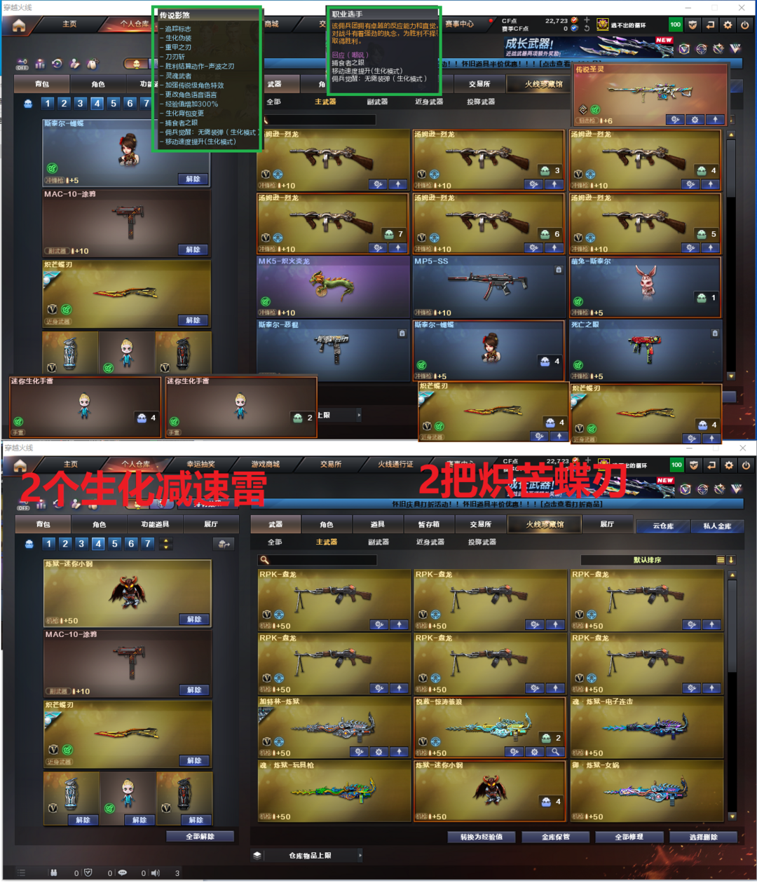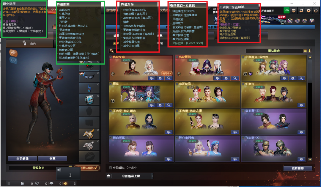 装备描述:排位:可以------------生化四防全装(可以变更背包、查看生化僵尸血量)无需换弹、6烈、6盘、炼狱小刚、斯太尔蝴蝶、斯太尔萌兔、MK5-炽火炎龙、传说圣灵、死亡之眼、MAC-涂鸦、2把炽芒蝶刃、2个生化减速雷、超级对讲机、生化常用弹匣、、、、、、、爆破四防:幻神10皮+音效(宠儿、幻神-Heartshot皮肤、AG、青鹤、2022、巅峰荣耀、冠军之幻、降龙、纸灯笼、黄忠皮肤)、M200-竞技荣光、98K星神、王者星神、USP雷暴、2个COP云龙、柯尔特竞技荣光、23白鲨柯尔特、4个世冠柯尔特、2个COP雷霆王者、2个冠军之特、G36幻影、传说暗裔、传说辉光、传说梦魇、白虎、QBZ冠军之薇、王者白虎、王者蔷薇、、、幻神音效、裁决音效、星神音效、蔷薇音效、白虎音效、毁灭音效、雷神音效、、、1套夜魔、1套电竞装甲、4套竞技荣光、3套云龙、2套雷霆王者、、、生化四防(传说影煞、职业选手)爆破四防(传说女帝、云悠悠、雨棠、王者惊若翩鸿)