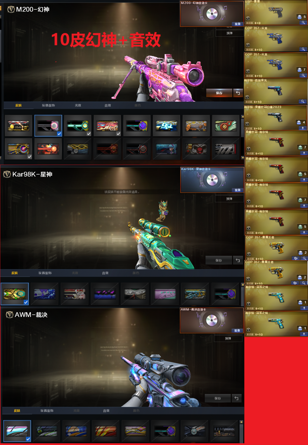 幻影【10皮幻神音效】星神全手枪|裁决音效|冠军薇白虎300V6盘6烈蝴蝶炽芒蝶刃|传说女帝影煞