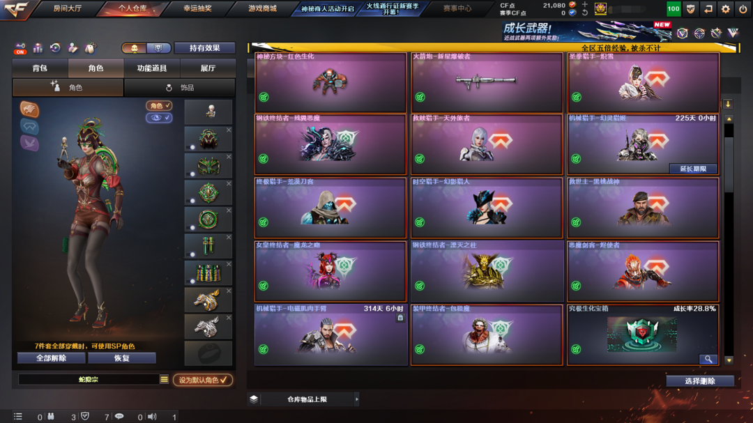 炽芒蝶刃✅幻神✅桑巴玫瑰✅蝴蝶➕毒蜂➕天外旅者✅6盘6烈✅生化背包✅圣拳➕终极➕机械➕包租婆-皮肤✅