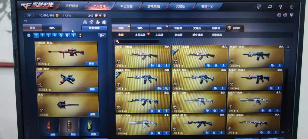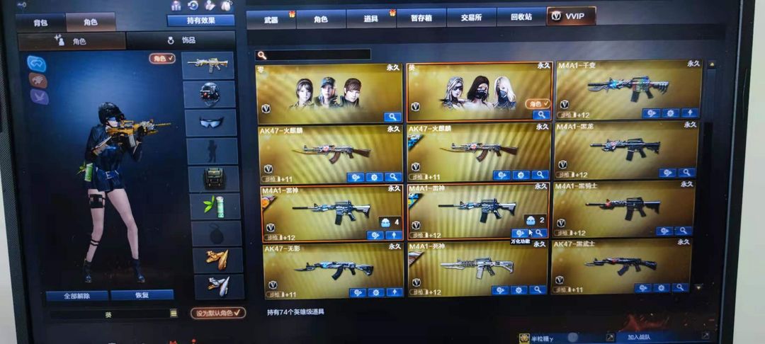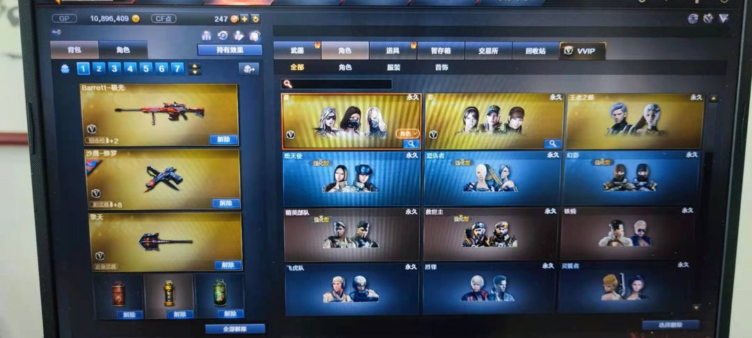 装备描述:紫金大元首74V|王者-零|6王者之心幻魄武光力怒锋|死亡6烈龙炼狱6盘龙丨雷神荣耀之魄|毁灭荣耀之怒|屠龙荣耀之锋丨CFS皮肤全|幻兽高爆两套|COP旗袍|超级背包|15步枪11狙击12手枪12刀