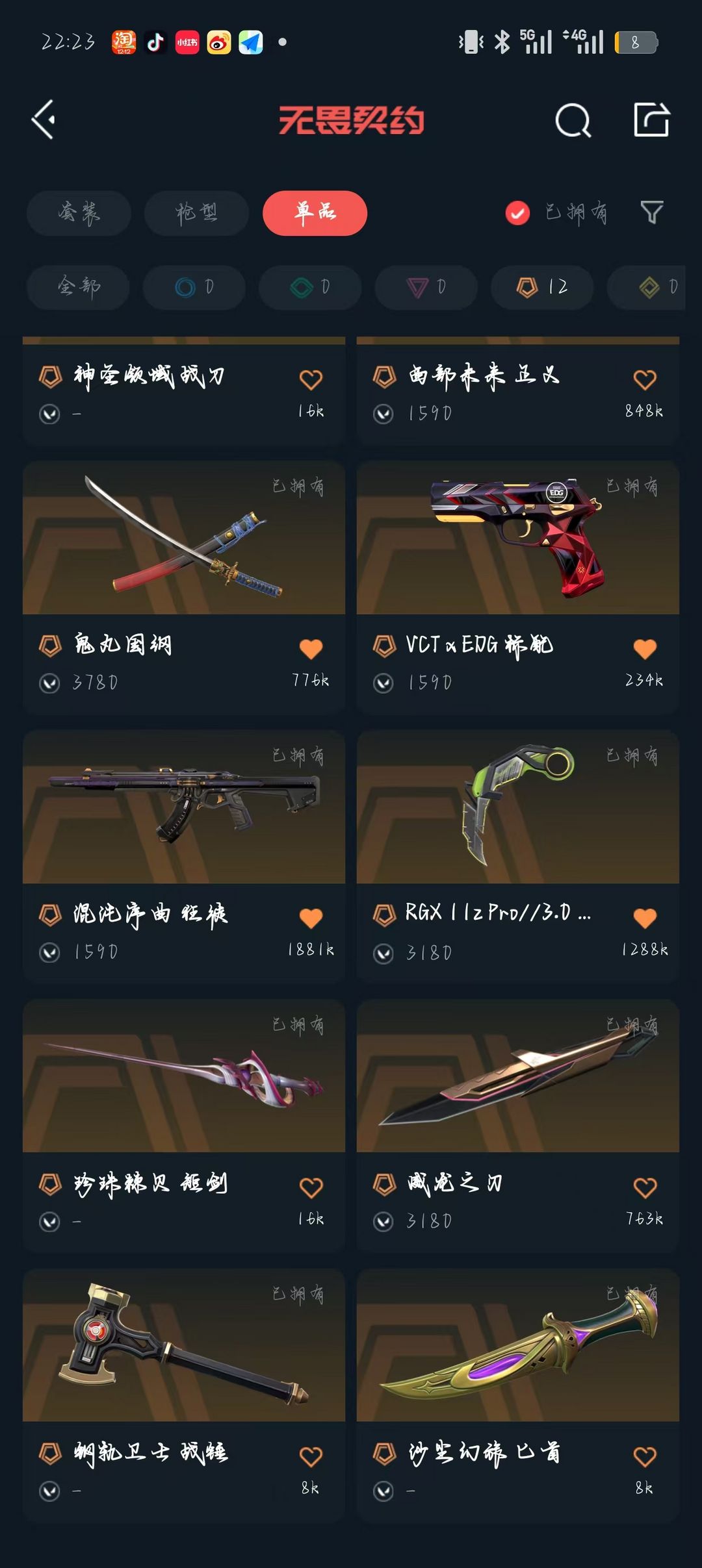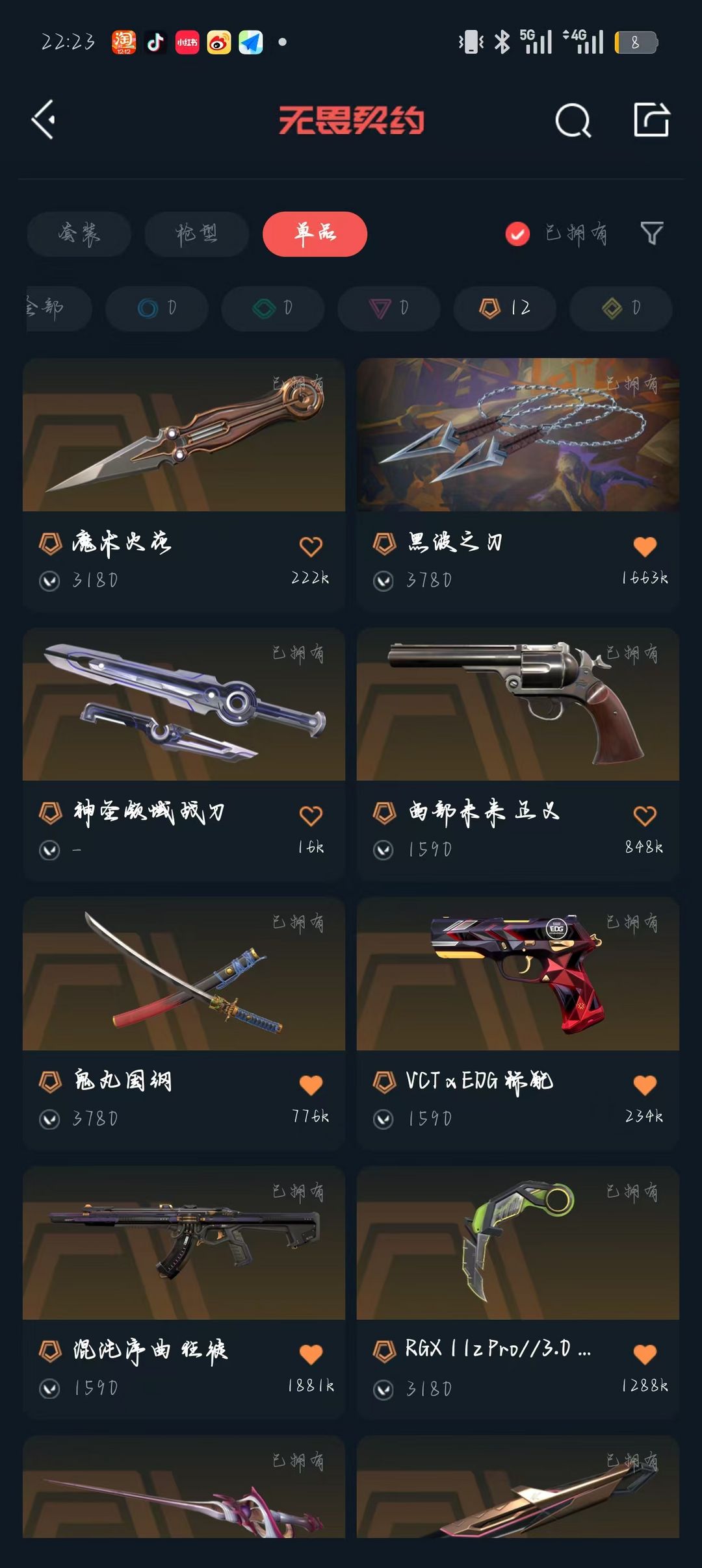 可排位+显卡爪刀+魔术火花+混沌狂徒+边陲正义+鬼丸国纲+盖亚狂徒+侦查幻影