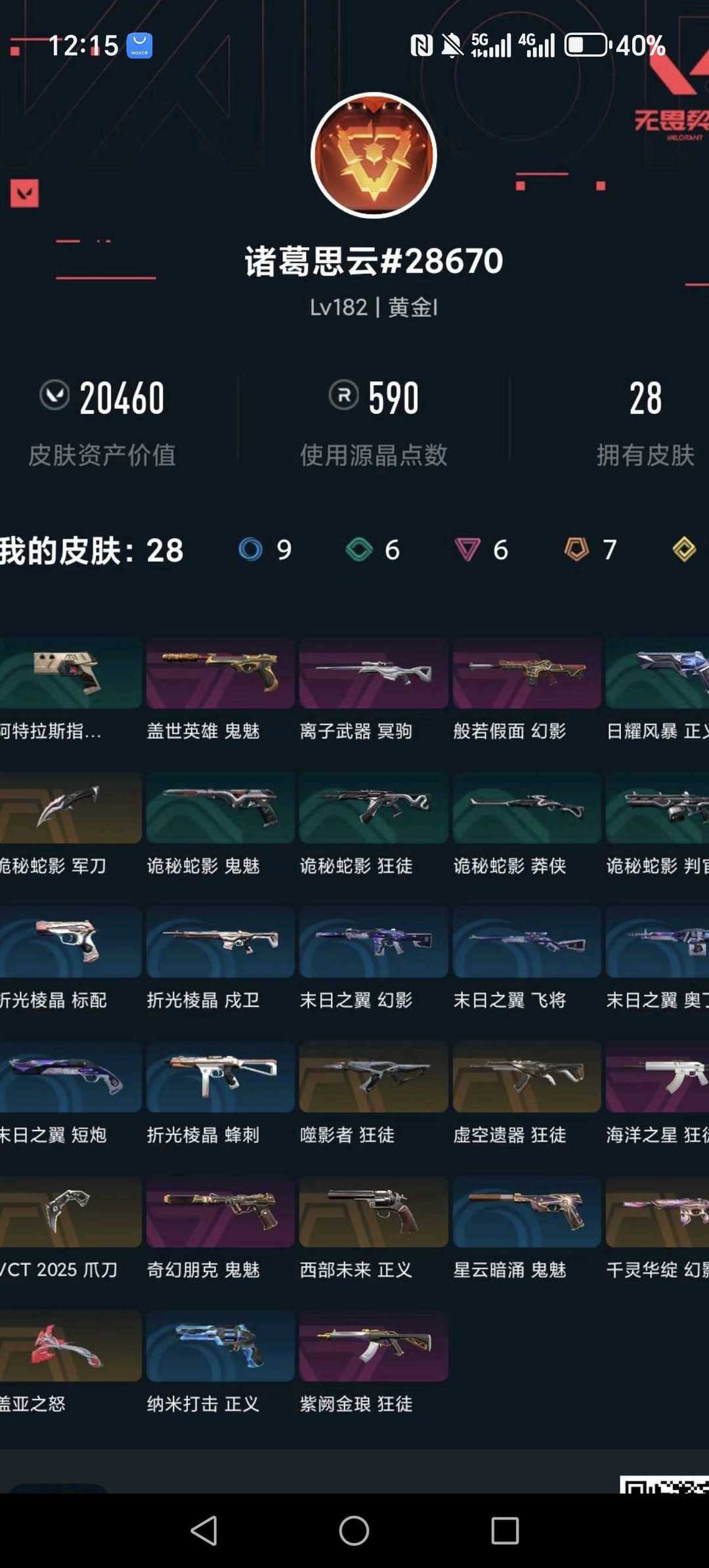 可排位+VCT爪刀+虚空狂徒+噬影者狂徒+紫金狂徒+千灵幻影+离子大狙+假面幻影